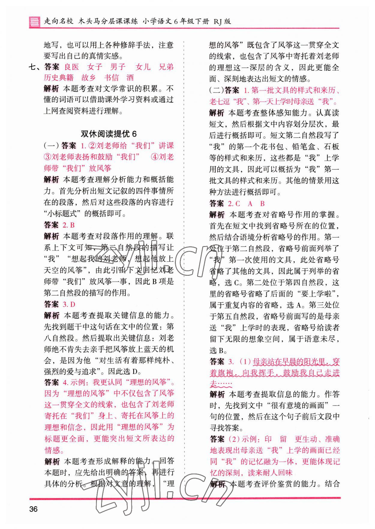 注:目前有些书本章节名称可能整理的还不是很完善,但都是按照顺序排列的,请同学们按照顺序仔细查找。练习册 2023年木头马分层课课练六年级语文下册人教版 答案主要是用来给同学们做完题方便对答案用的,请勿直接抄袭。