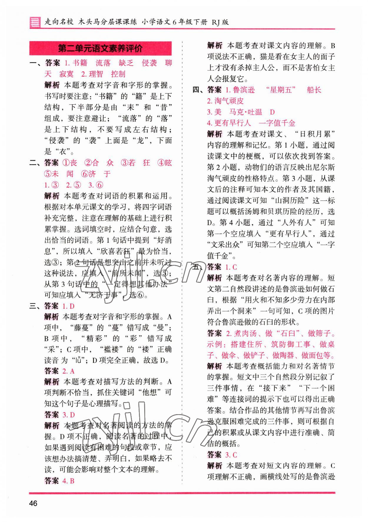 注:目前有些书本章节名称可能整理的还不是很完善,但都是按照顺序排列的,请同学们按照顺序仔细查找。练习册 2023年木头马分层课课练六年级语文下册人教版 答案主要是用来给同学们做完题方便对答案用的,请勿直接抄袭。