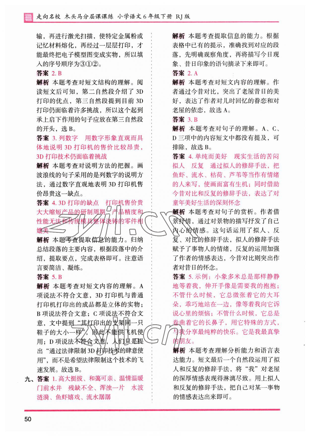 注:目前有些书本章节名称可能整理的还不是很完善,但都是按照顺序排列的,请同学们按照顺序仔细查找。练习册 2023年木头马分层课课练六年级语文下册人教版 答案主要是用来给同学们做完题方便对答案用的,请勿直接抄袭。