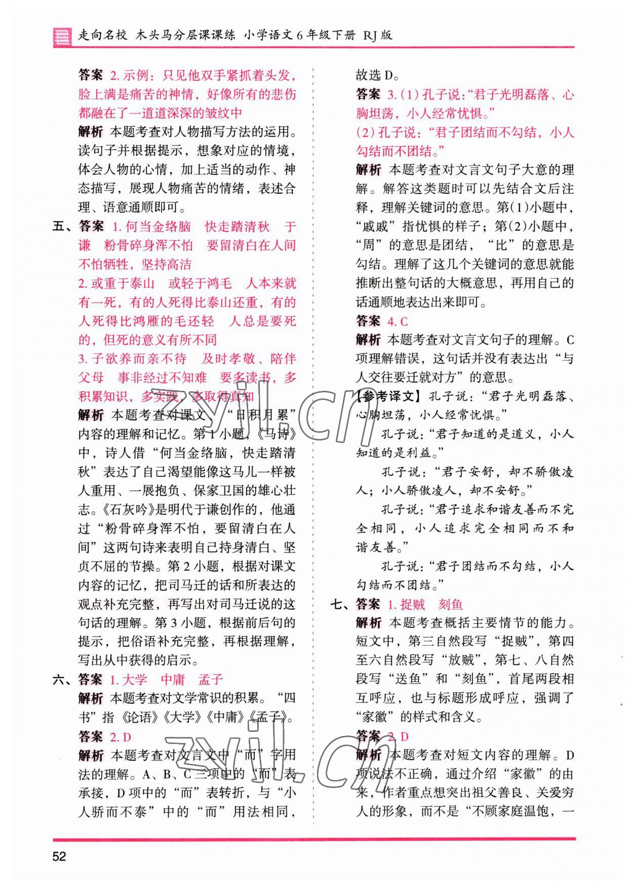 注:目前有些书本章节名称可能整理的还不是很完善,但都是按照顺序排列的,请同学们按照顺序仔细查找。练习册 2023年木头马分层课课练六年级语文下册人教版 答案主要是用来给同学们做完题方便对答案用的,请勿直接抄袭。