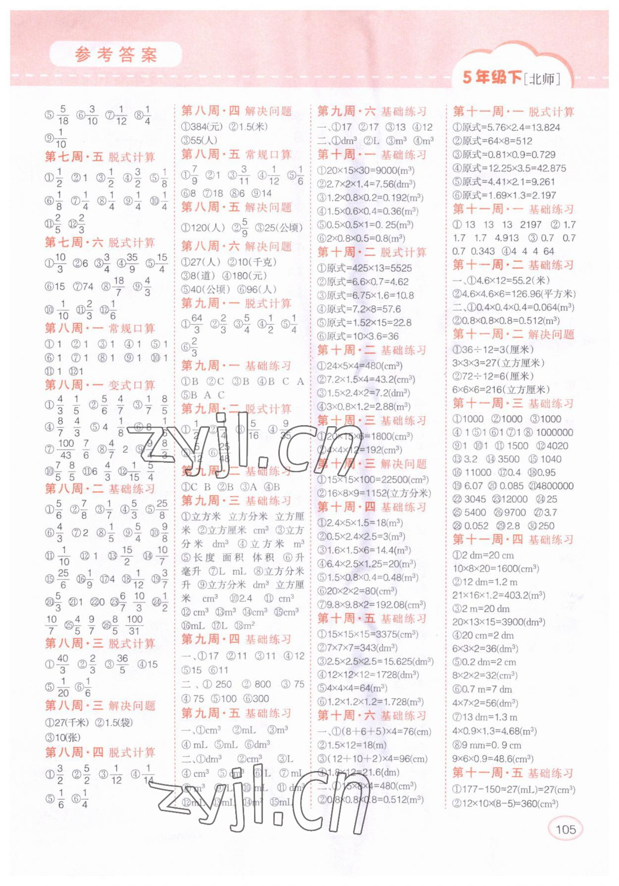 注:目前有些书本章节名称可能整理的还不是很完善,但都是按照顺序排列的,请同学们按照顺序仔细查找。练习册 2023年同步口算题卡五年级数学下册北师大版 答案主要是用来给同学们做完题方便对答案用的,请勿直接抄袭。