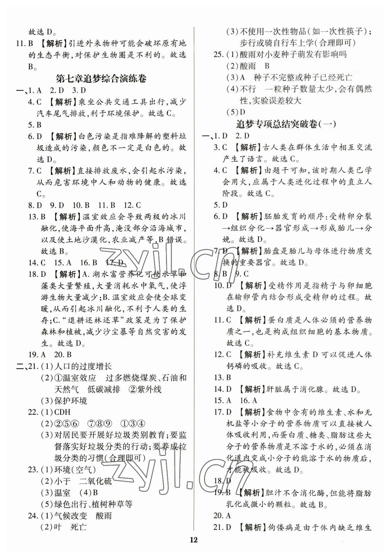 《2023年追梦之旅铺路卷七年级生物下册人教版河南专版》