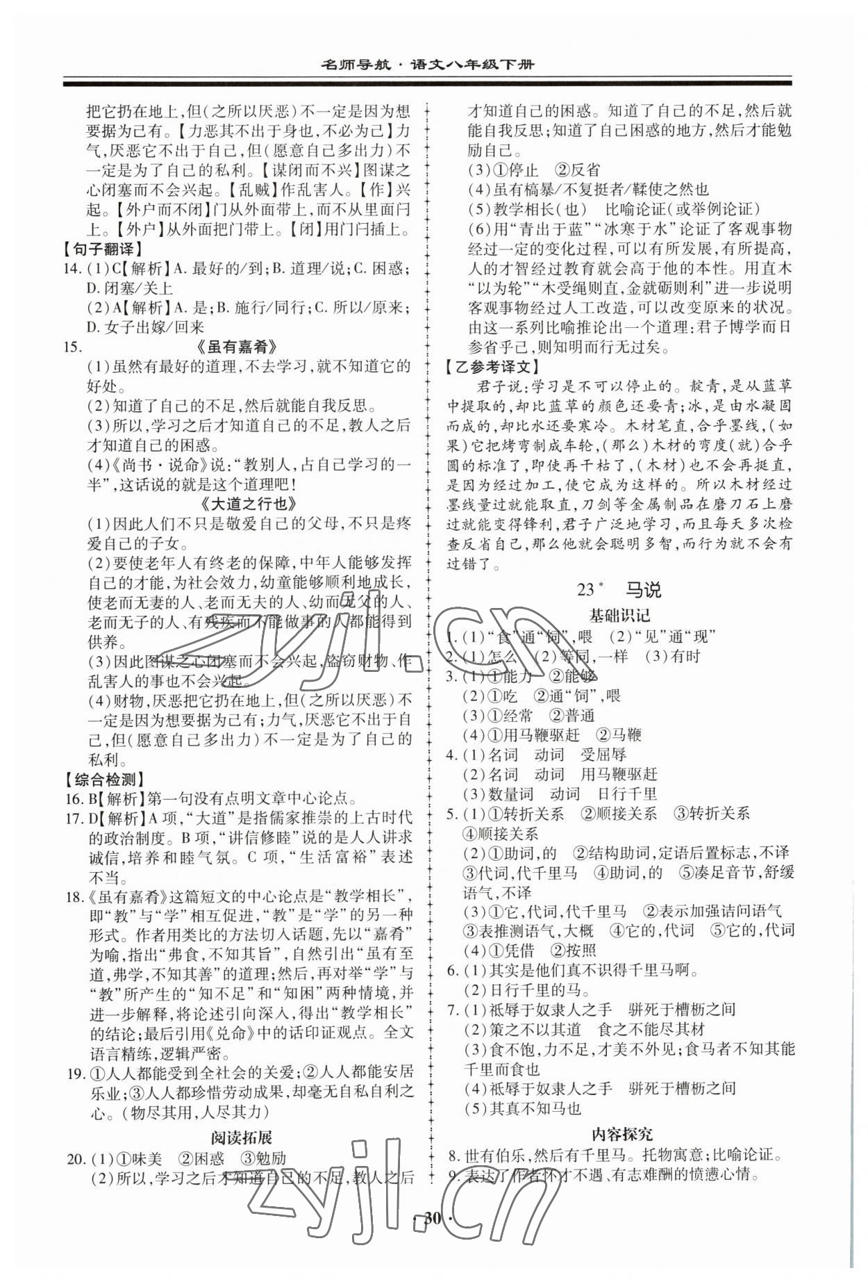 注:目前有些书本章节名称可能整理的还不是很完善,但都是按照顺序排列的,请同学们按照顺序仔细查找。练习册 2023年名师导航同步练与测八年级语文下册人教版 答案主要是用来给同学们做完题方便对答案用的,请勿直接抄袭。