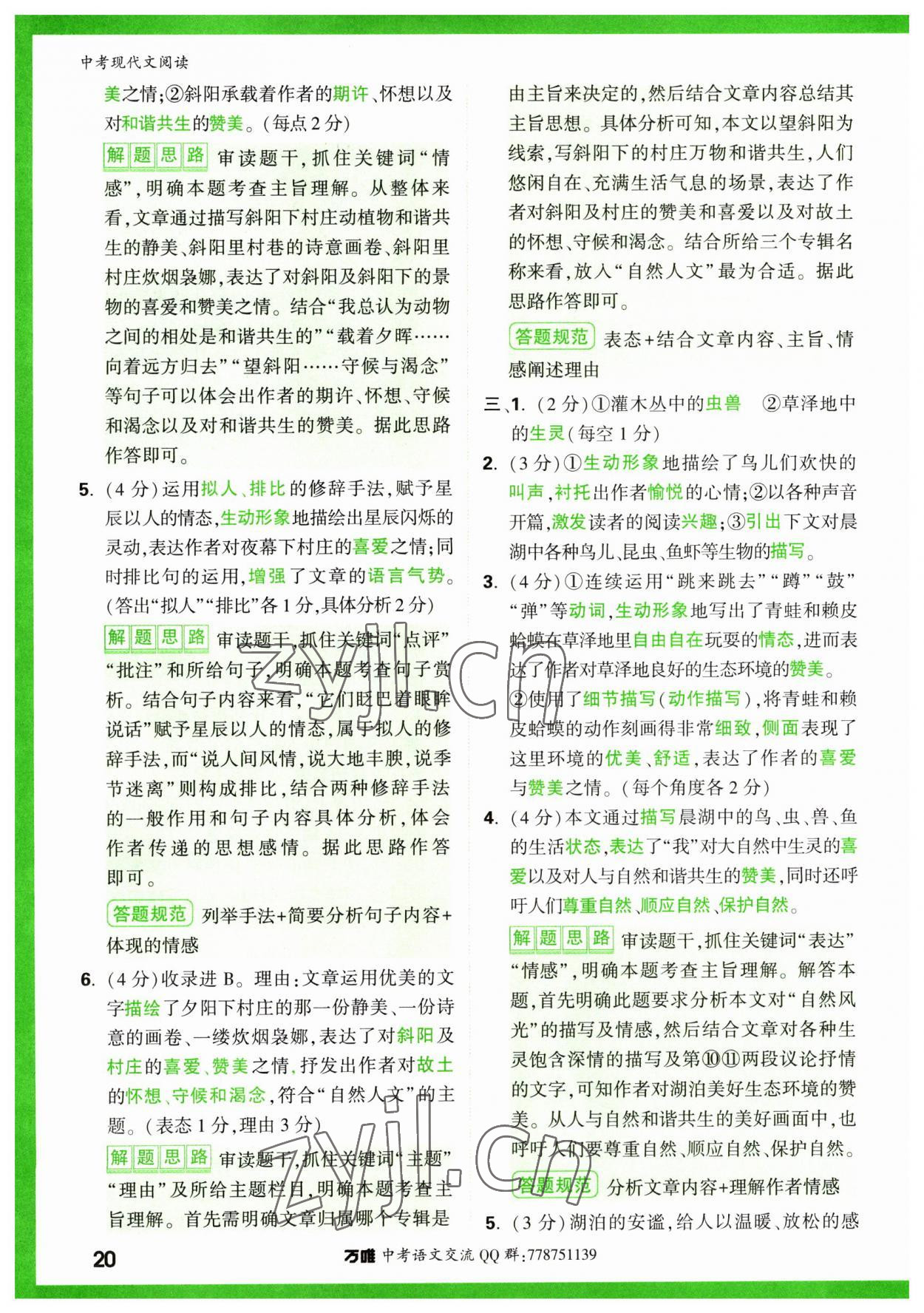 注:目前有些书本章节名称可能整理的还不是很完善,但都是按照顺序排列的,请同学们按照顺序仔细查找。练习册 2023年万唯中考现代文阅读语文 答案主要是用来给同学们做完题方便对答案用的,请勿直接抄袭。