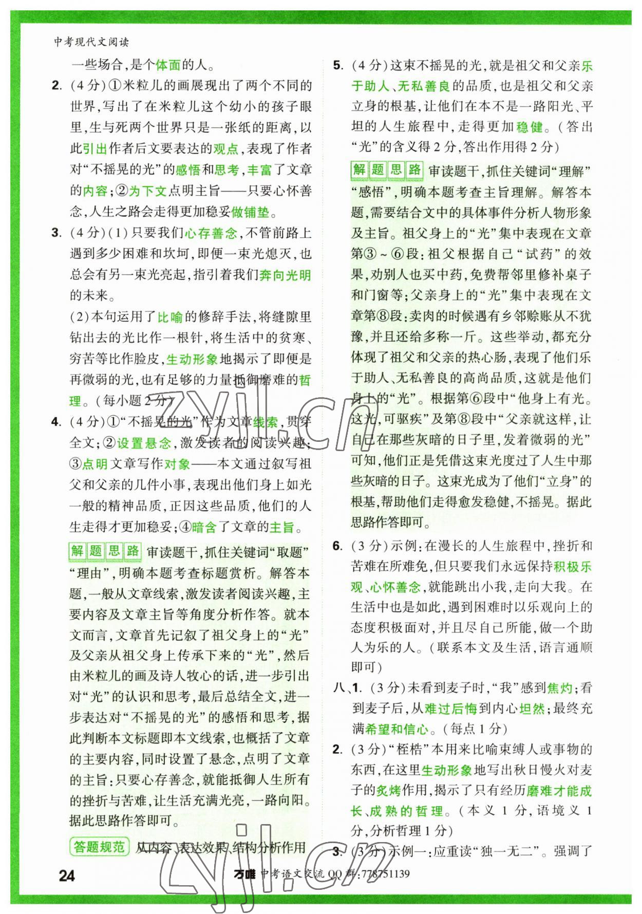 注:目前有些书本章节名称可能整理的还不是很完善,但都是按照顺序排列的,请同学们按照顺序仔细查找。练习册 2023年万唯中考现代文阅读语文 答案主要是用来给同学们做完题方便对答案用的,请勿直接抄袭。