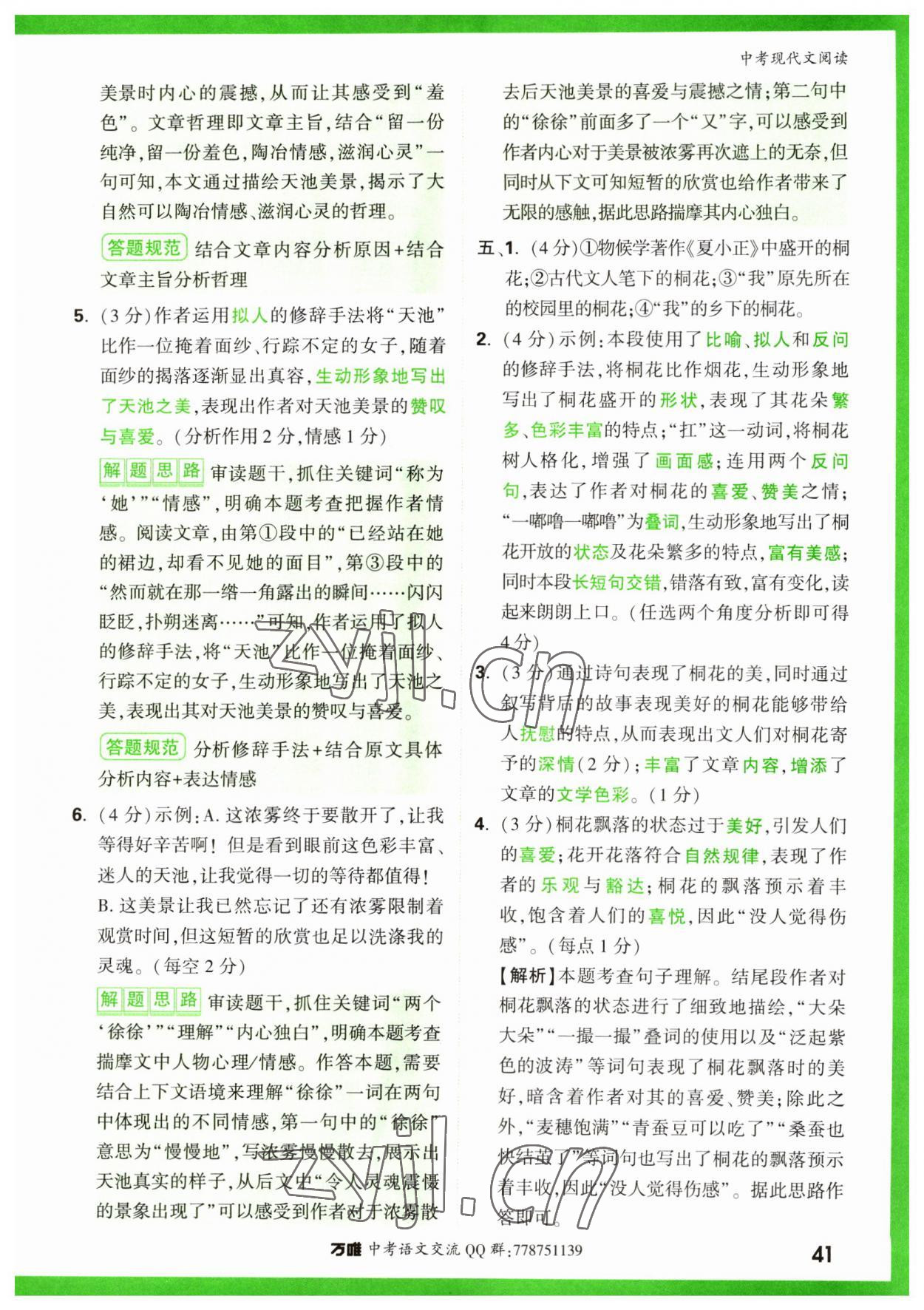 注:目前有些书本章节名称可能整理的还不是很完善,但都是按照顺序排列的,请同学们按照顺序仔细查找。练习册 2023年万唯中考现代文阅读语文 答案主要是用来给同学们做完题方便对答案用的,请勿直接抄袭。