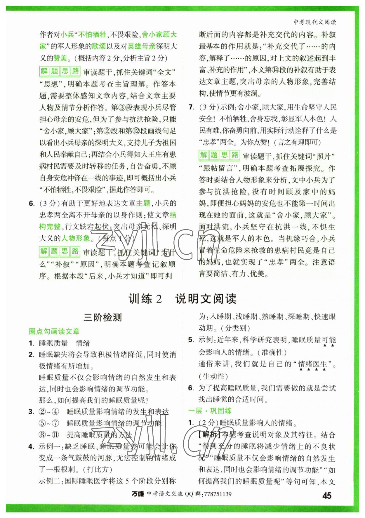 注:目前有些书本章节名称可能整理的还不是很完善,但都是按照顺序排列的,请同学们按照顺序仔细查找。练习册 2023年万唯中考现代文阅读语文 答案主要是用来给同学们做完题方便对答案用的,请勿直接抄袭。