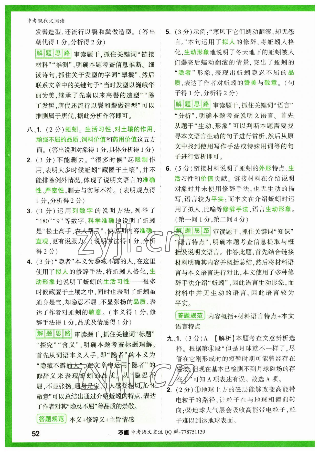 注:目前有些书本章节名称可能整理的还不是很完善,但都是按照顺序排列的,请同学们按照顺序仔细查找。练习册 2023年万唯中考现代文阅读语文 答案主要是用来给同学们做完题方便对答案用的,请勿直接抄袭。