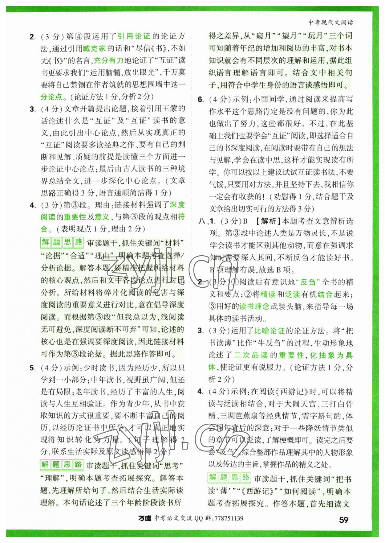 注:目前有些书本章节名称可能整理的还不是很完善,但都是按照顺序排列的,请同学们按照顺序仔细查找。练习册 2023年万唯中考现代文阅读语文 答案主要是用来给同学们做完题方便对答案用的,请勿直接抄袭。