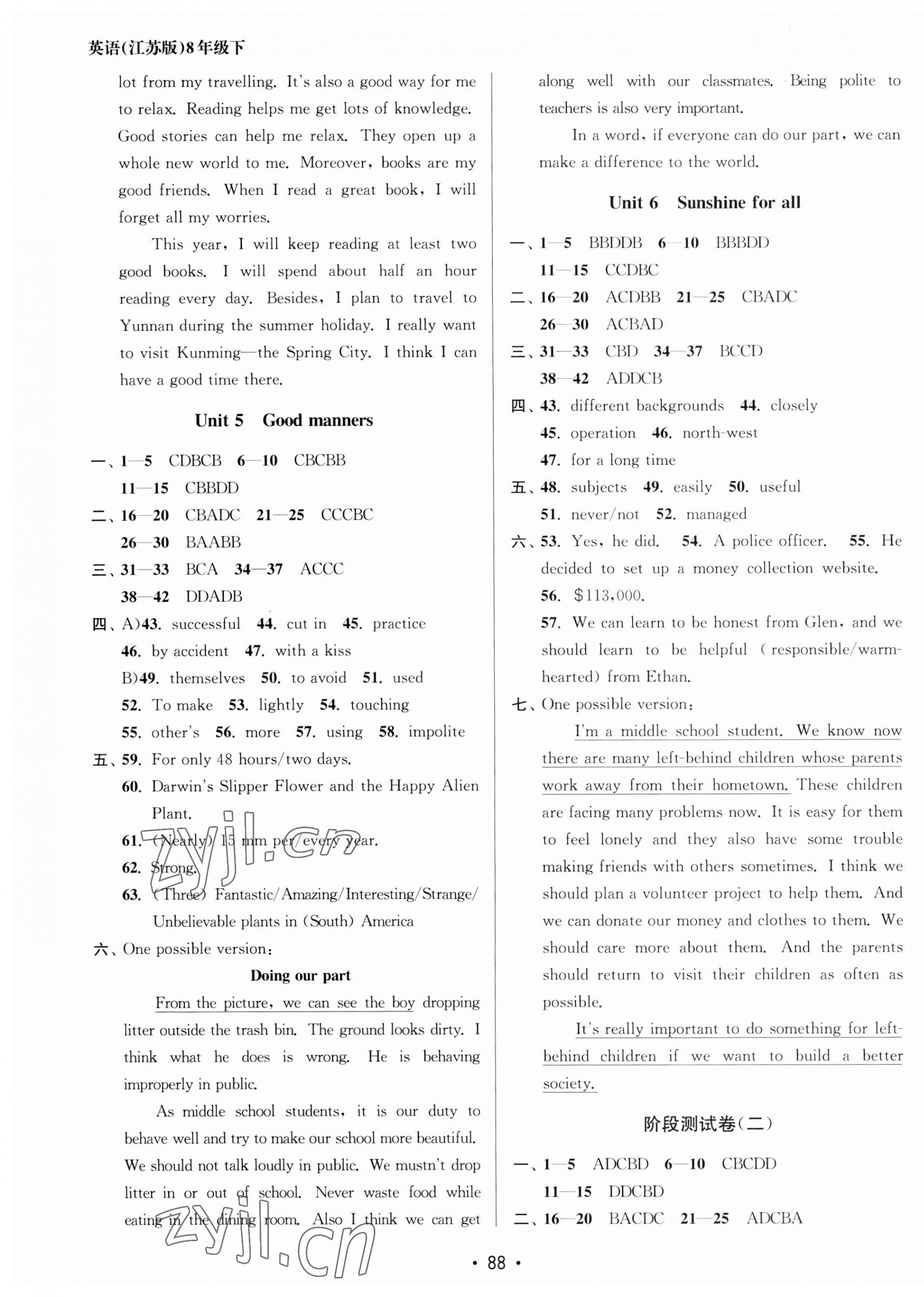 注:目前有些书本章节名称可能整理的还不是很完善,但都是按照顺序排列的,请同学们按照顺序仔细查找。练习册 2023年成长空间全程跟踪测试卷八年级英语下册译林版 答案主要是用来给同学们做完题方便对答案用的,请勿直接抄袭。