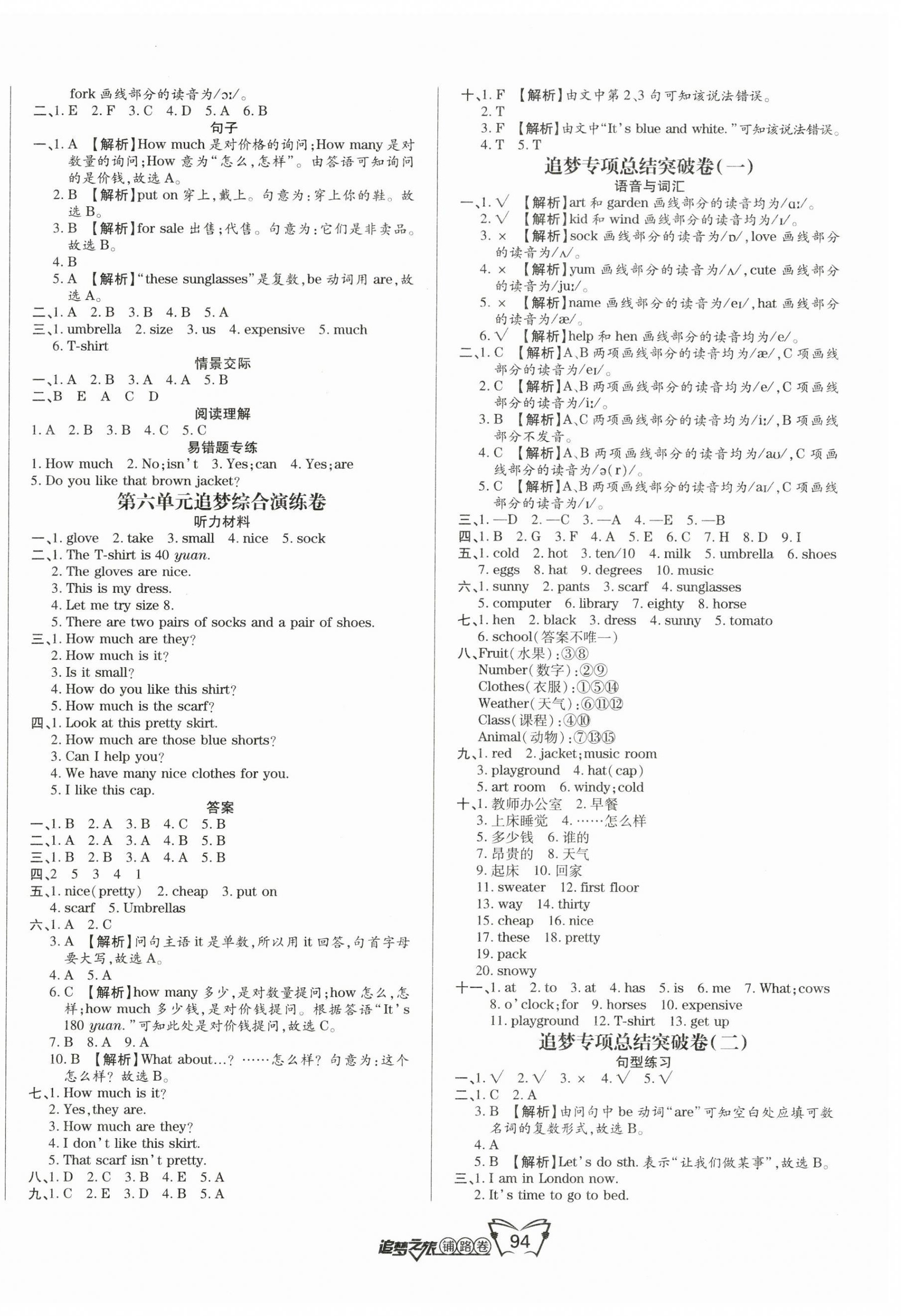 2023年追梦之旅铺路卷四年级英语下册人教版河南专版