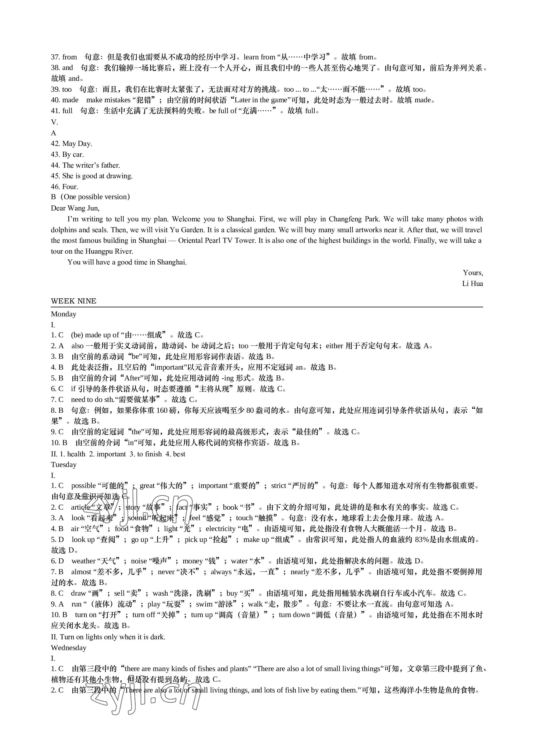注:目前有些书本章节名称可能整理的还不是很完善,但都是按照顺序排列的,请同学们按照顺序仔细查找。练习册 2023年深圳金卷读写周计划七年级英语下册沪教版 答案主要是用来给同学们做完题方便对答案用的,请勿直接抄袭。