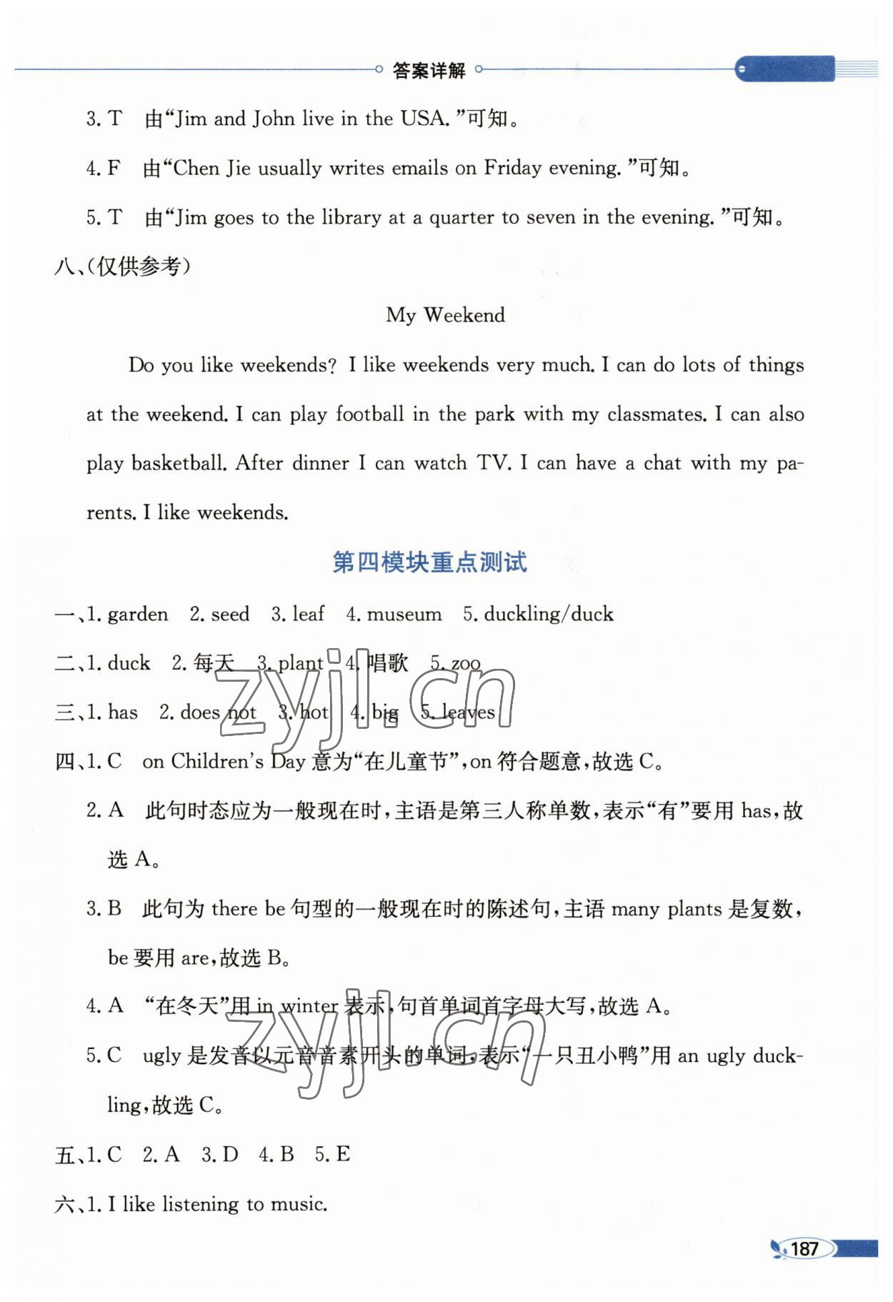 注:目前有些书本章节名称可能整理的还不是很完善,但都是按照顺序排列的,请同学们按照顺序仔细查找。练习册 2023年教材全解四年级英语下册沪教版 答案主要是用来给同学们做完题方便对答案用的,请勿直接抄袭。