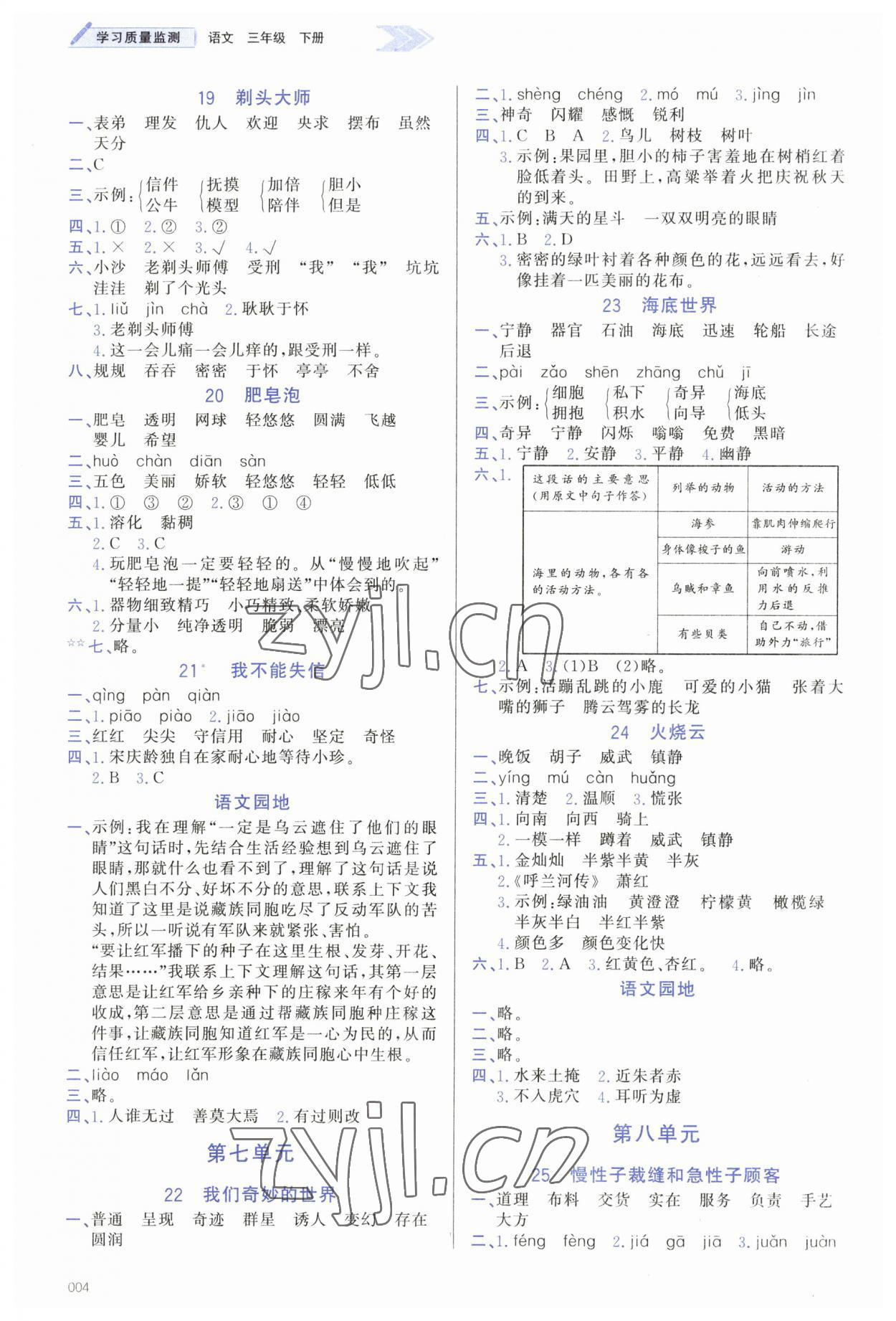 注:目前有些书本章节名称可能整理的还不是很完善,但都是按照顺序排列的,请同学们按照顺序仔细查找。练习册 2023年学习质量监测三年级语文下册人教版 答案主要是用来给同学们做完题方便对答案用的,请勿直接抄袭。