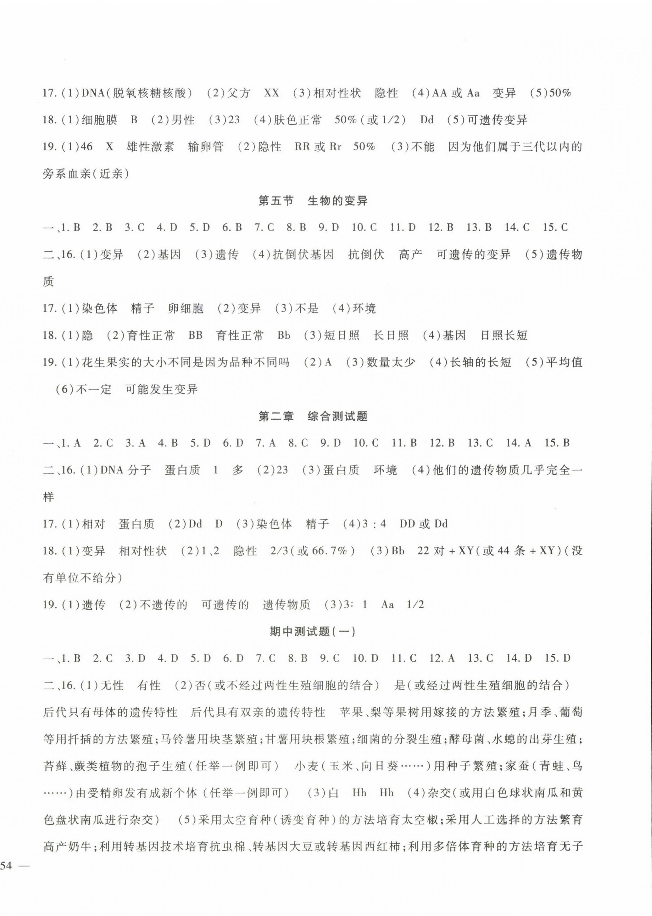 注:目前有些书本章节名称可能整理的还不是很完善,但都是按照顺序排列的,请同学们按照顺序仔细查找。练习册 2023年海淀金卷八年级生物下册人教版 答案主要是用来给同学们做完题方便对答案用的,请勿直接抄袭。