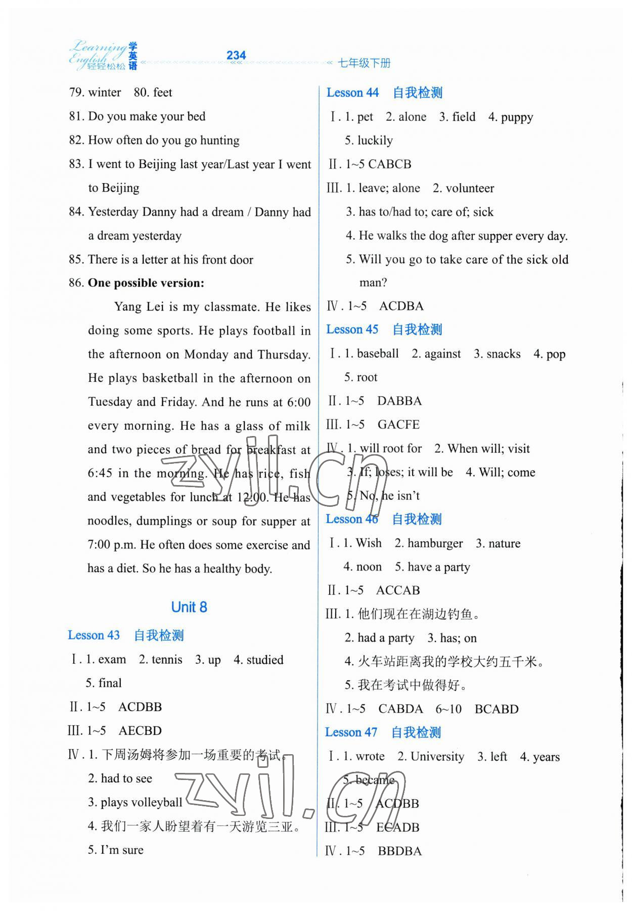 注:目前有些书本章节名称可能整理的还不是很完善,但都是按照顺序排列的,请同学们按照顺序仔细查找。练习册 2023年轻轻松松七年级英语下册冀教版 答案主要是用来给同学们做完题方便对答案用的,请勿直接抄袭。