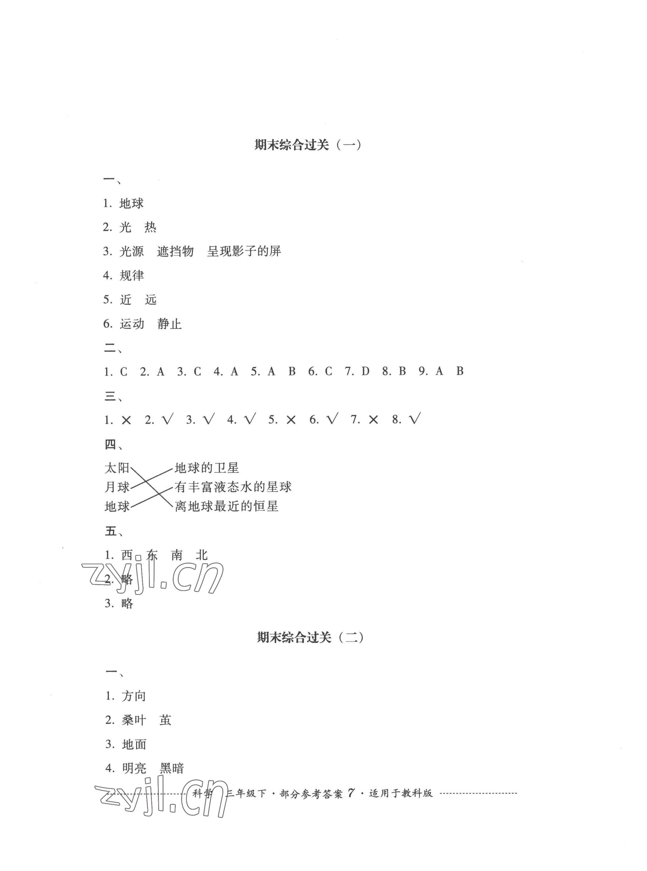 注:目前有些书本章节名称可能整理的还不是很完善,但都是按照顺序排列的,请同学们按照顺序仔细查找。练习册 2023年过关清单四川教育出版社三年级科学下册教科版 答案主要是用来给同学们做完题方便对答案用的,请勿直接抄袭。