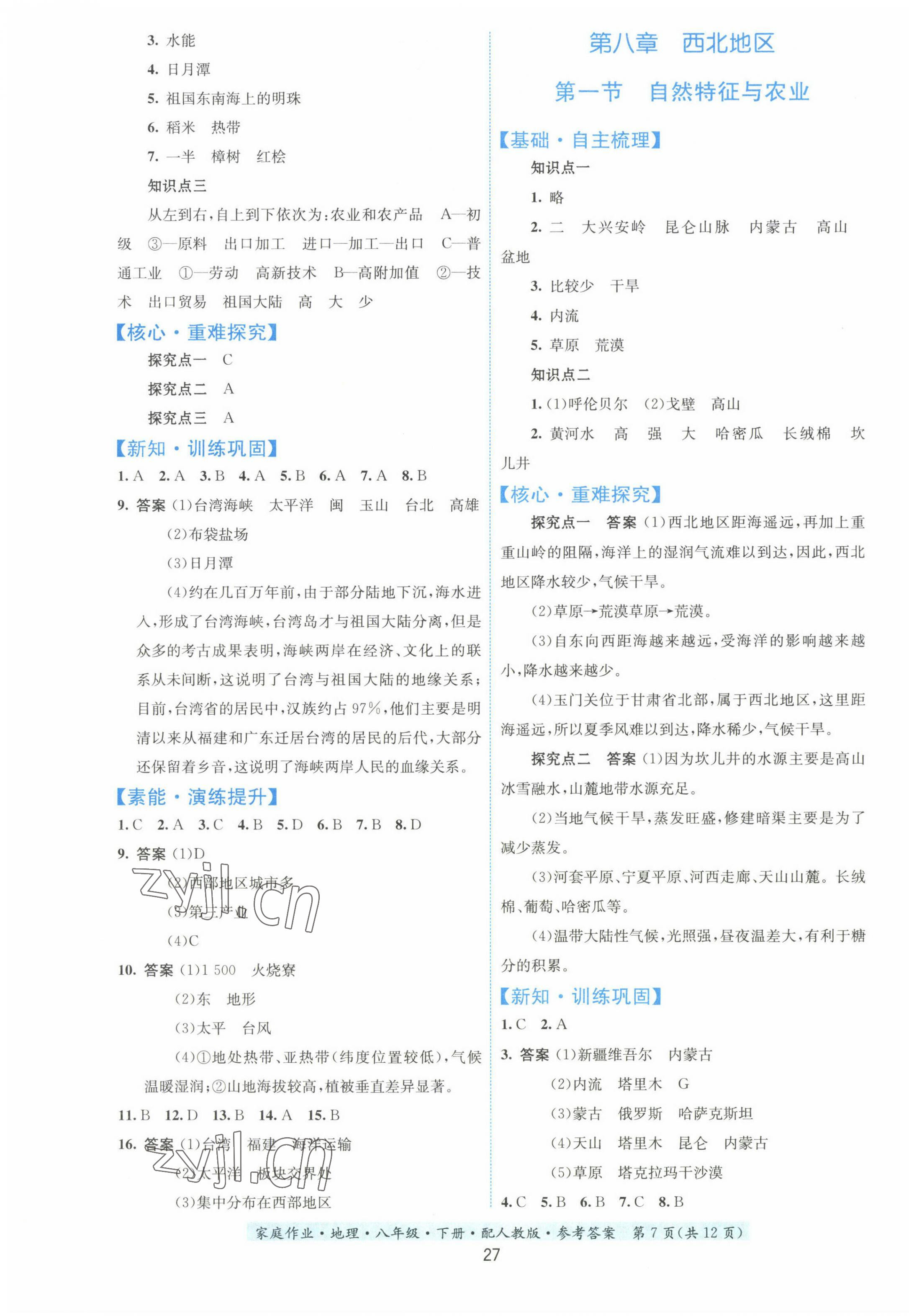 2023年家庭作业八年级地理下册人教版