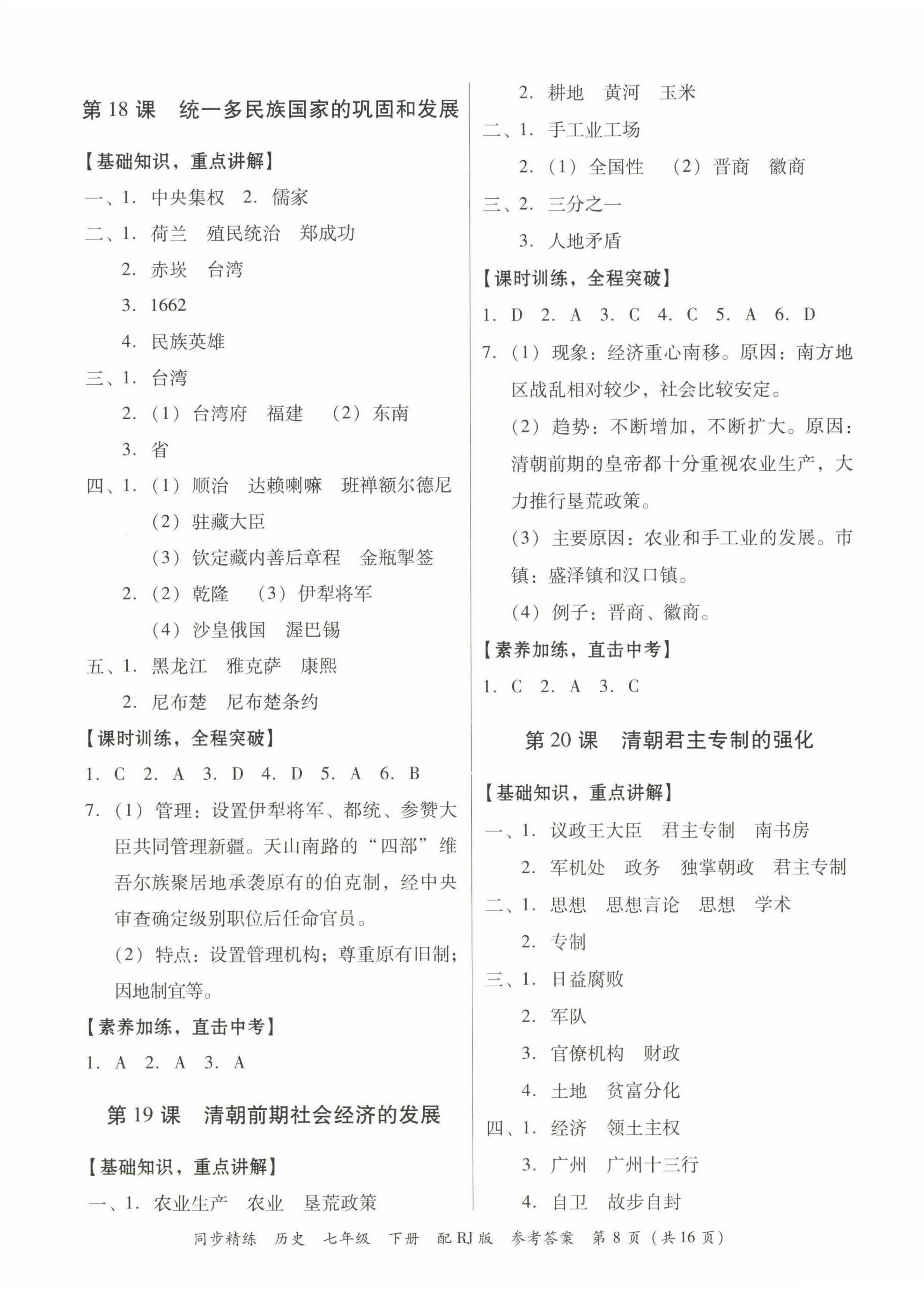 注:目前有些书本章节名称可能整理的还不是很完善,但都是按照顺序排列的,请同学们按照顺序仔细查找。练习册 2023年同步精练广东教育出版社七年级历史下册人教版 答案主要是用来给同学们做完题方便对答案用的,请勿直接抄袭。