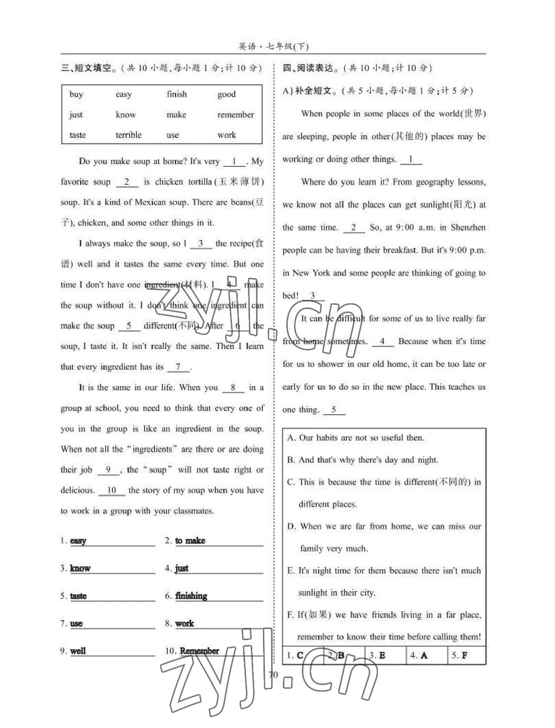 注:目前有些书本章节名称可能整理的还不是很完善,但都是按照顺序排列的,请同学们按照顺序仔细查找。练习册 2023年考拉起飞七年级英语下册人教版 答案主要是用来给同学们做完题方便对答案用的,请勿直接抄袭。