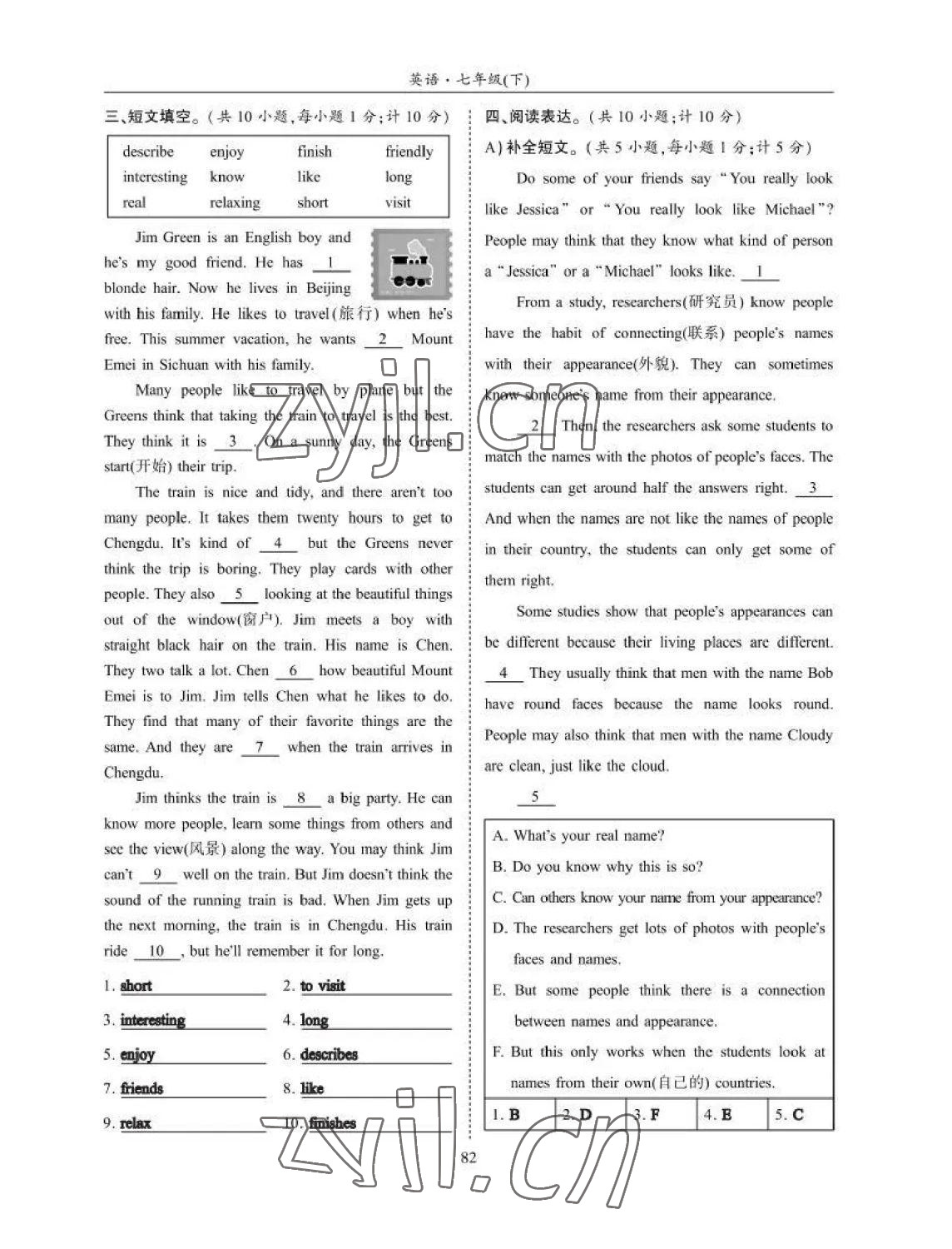 注:目前有些书本章节名称可能整理的还不是很完善,但都是按照顺序排列的,请同学们按照顺序仔细查找。练习册 2023年考拉起飞七年级英语下册人教版 答案主要是用来给同学们做完题方便对答案用的,请勿直接抄袭。