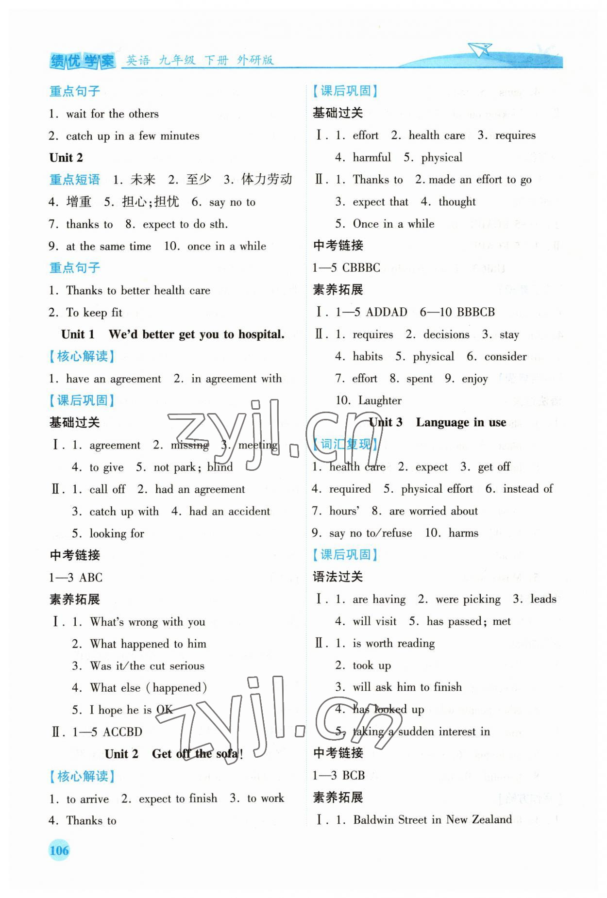 注:目前有些书本章节名称可能整理的还不是很完善,但都是按照顺序排列的,请同学们按照顺序仔细查找。练习册 2023年绩优学案九年级英语下册外研版 答案主要是用来给同学们做完题方便对答案用的,请勿直接抄袭。