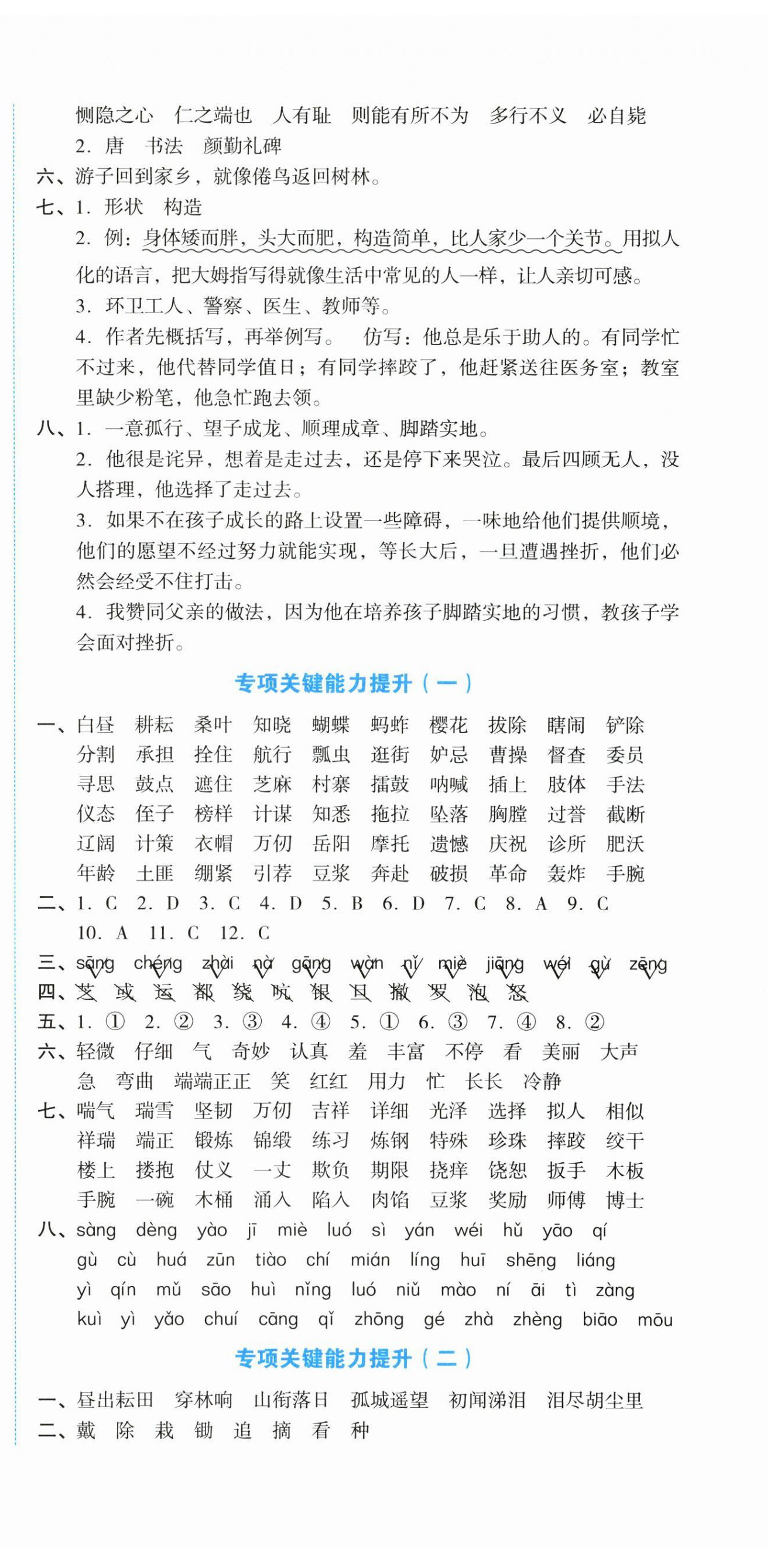 注:目前有些书本章节名称可能整理的还不是很完善,但都是按照顺序排列的,请同学们按照顺序仔细查找。练习册 2023年学科素养与能力提升五年级语文下册人教版 答案主要是用来给同学们做完题方便对答案用的,请勿直接抄袭。