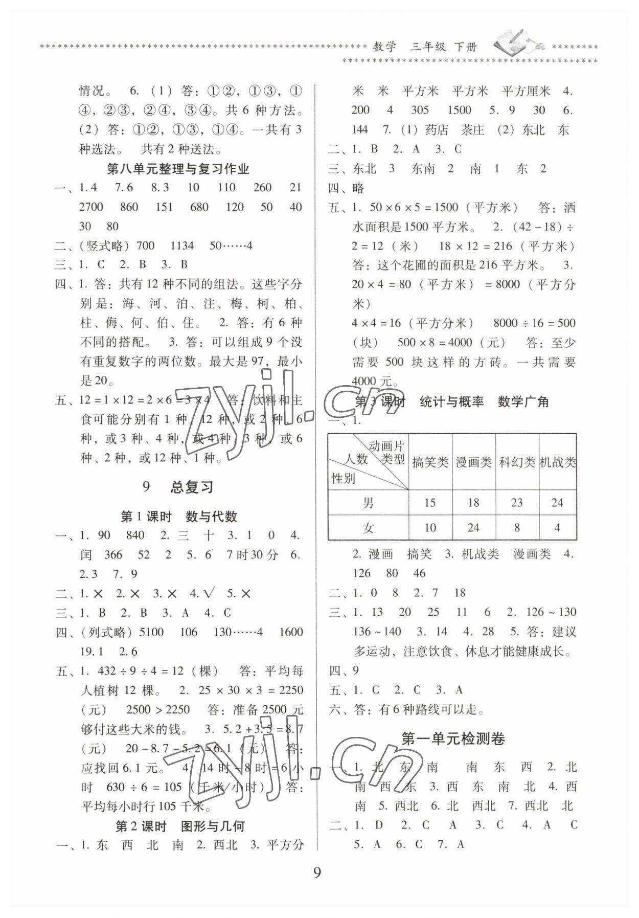 2023年名校核心作业本练习加检测三年级数学下册人教版