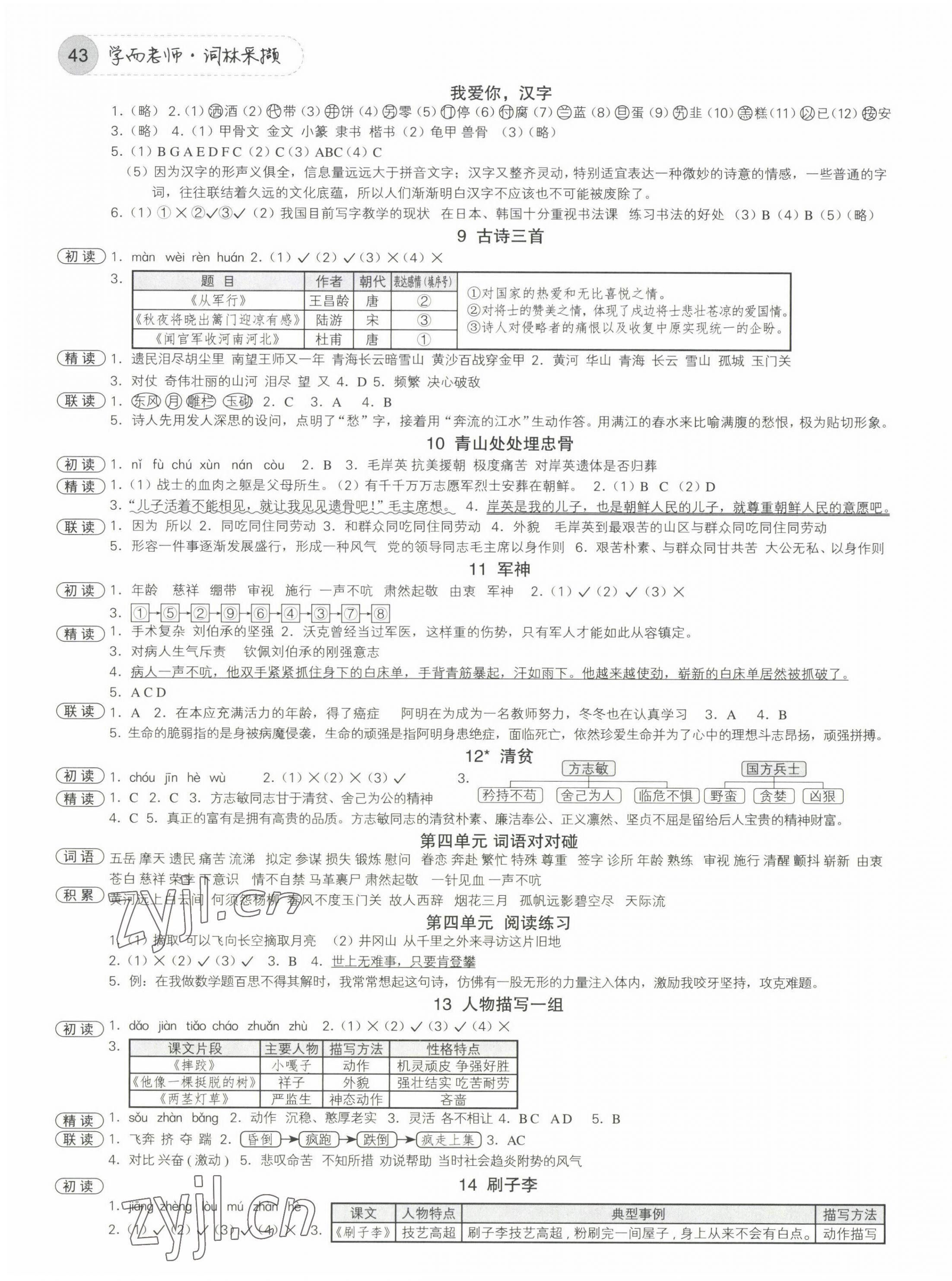 注:目前有些书本章节名称可能整理的还不是很完善,但都是按照顺序排列的,请同学们按照顺序仔细查找。练习册 2023年学而老师词林采撷五年级语文下册人教版浙江专版 答案主要是用来给同学们做完题方便对答案用的,请勿直接抄袭。