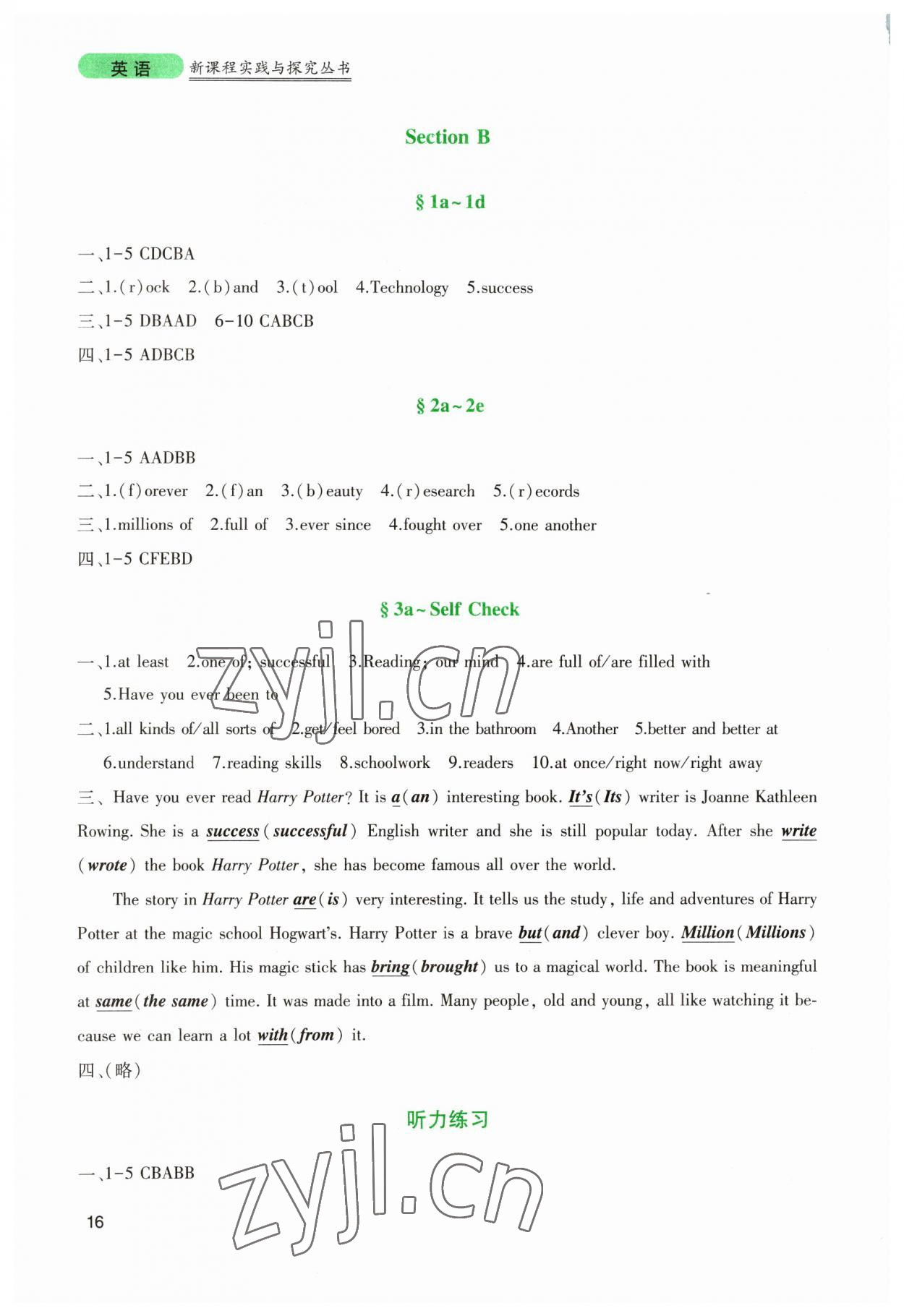 注:目前有些书本章节名称可能整理的还不是很完善,但都是按照顺序排列的,请同学们按照顺序仔细查找。练习册 2023年新课程实践与探究丛书八年级英语下册人教版 答案主要是用来给同学们做完题方便对答案用的,请勿直接抄袭。