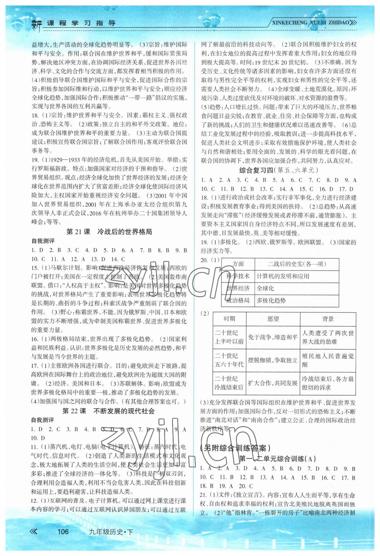 2023年新课程学习指导九年级历史下册人教版南方出版社