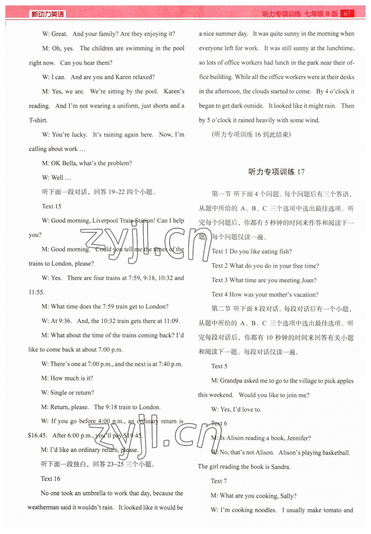 注:目前有些书本章节名称可能整理的还不是很完善,但都是按照顺序排列的,请同学们按照顺序仔细查找。练习册 2023年新动力听力专项训练七年级英语下册B版 答案主要是用来给同学们做完题方便对答案用的,请勿直接抄袭。
