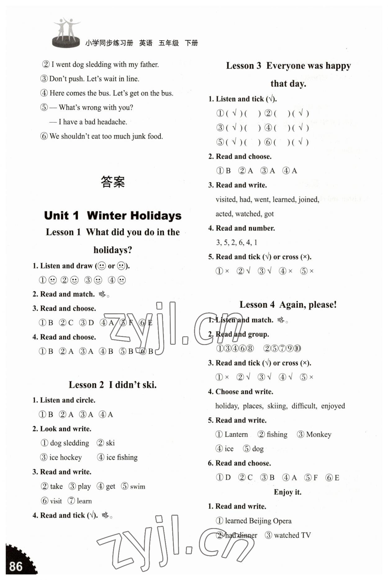 注:目前有些书本章节名称可能整理的还不是很完善,但都是按照顺序排列的,请同学们按照顺序仔细查找。练习册 2023年小学同步练习册五年级英语下册鲁科版山东专版54制山东友谊出版社 答案主要是用来给同学们做完题方便对答案用的,请勿直接抄袭。