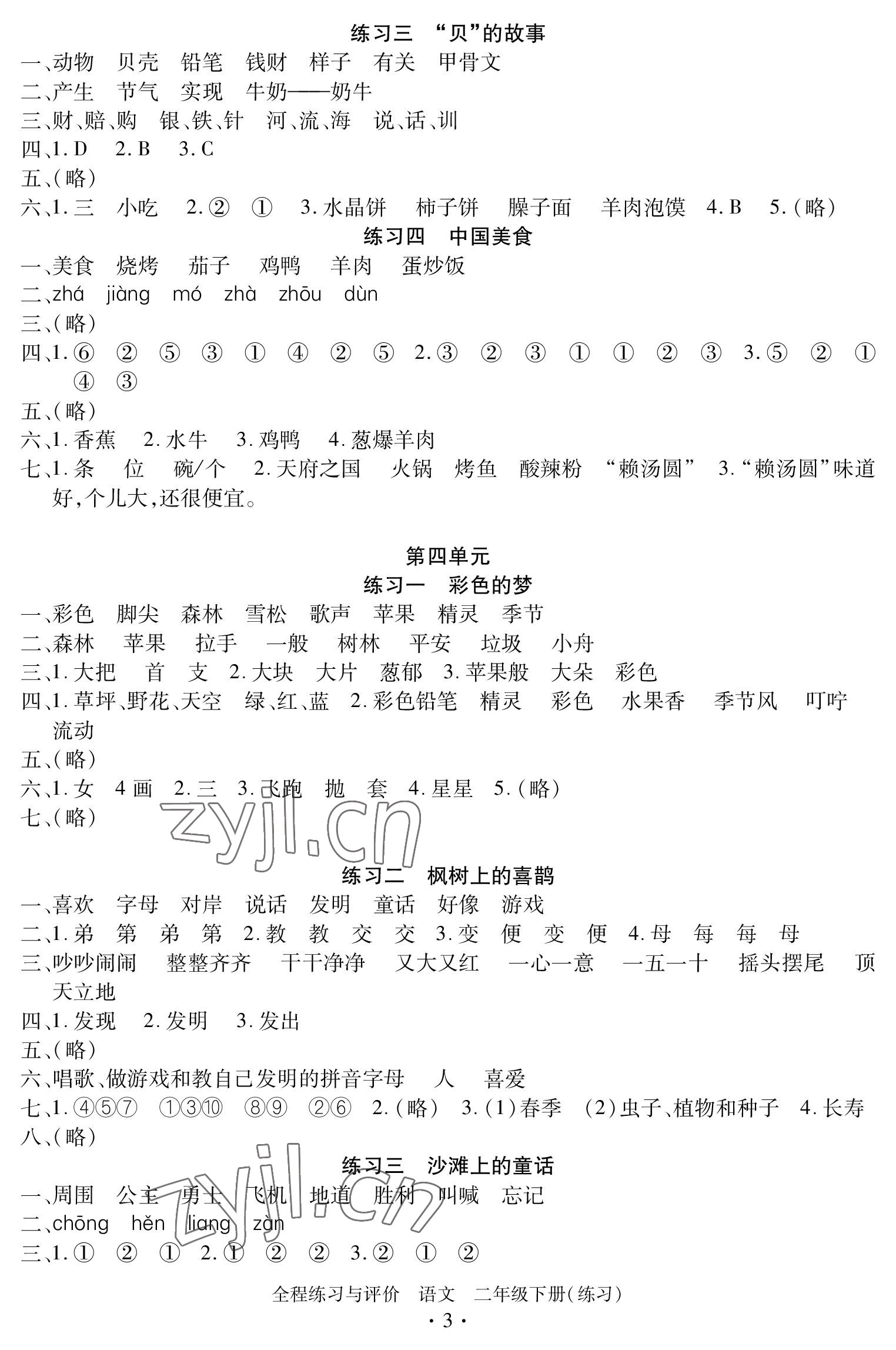 注:目前有些书本章节名称可能整理的还不是很完善,但都是按照顺序排列的,请同学们按照顺序仔细查找。练习册 2023年全程练习与评价二年级语文下册人教版 答案主要是用来给同学们做完题方便对答案用的,请勿直接抄袭。