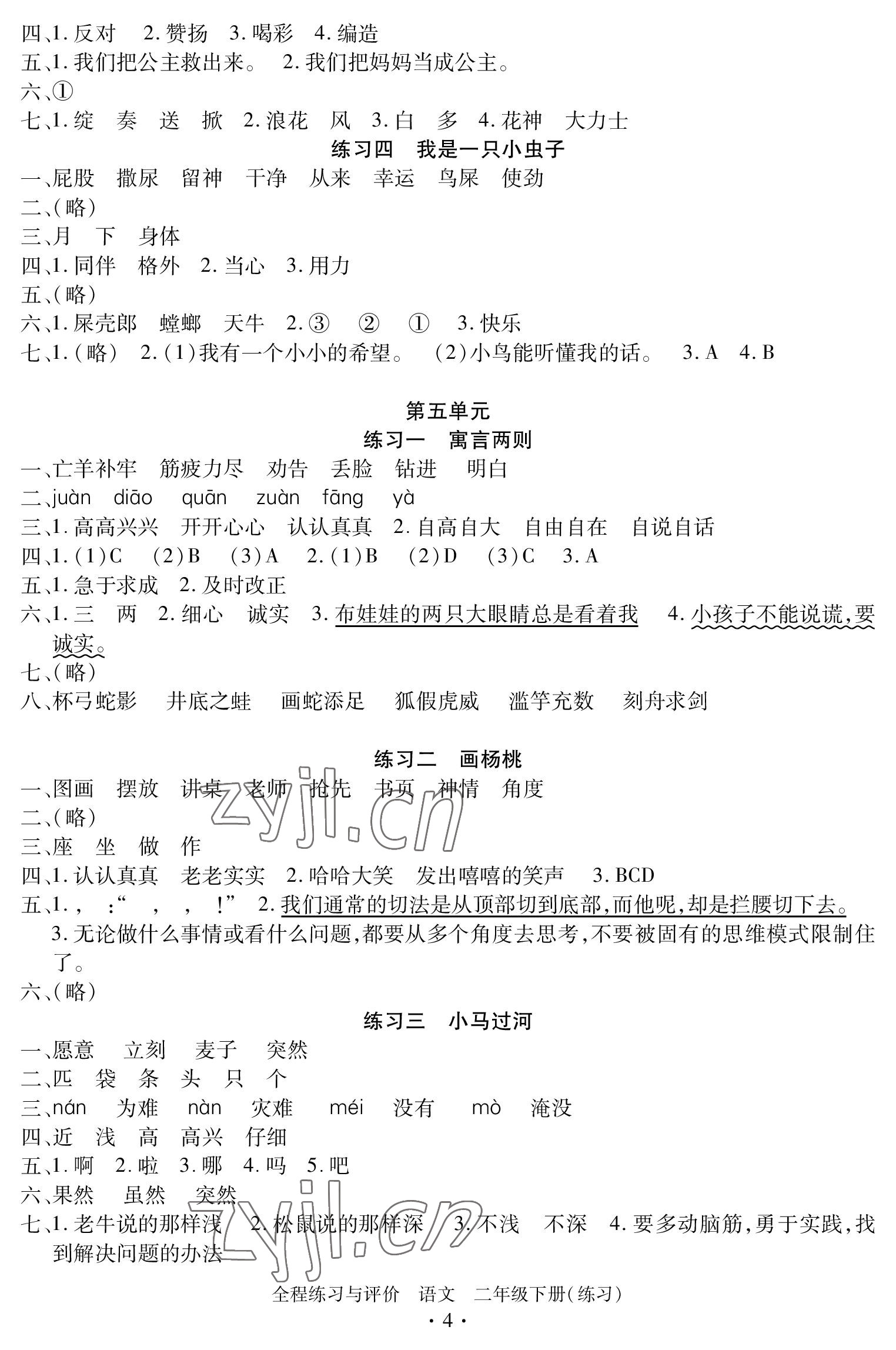 注:目前有些书本章节名称可能整理的还不是很完善,但都是按照顺序排列的,请同学们按照顺序仔细查找。练习册 2023年全程练习与评价二年级语文下册人教版 答案主要是用来给同学们做完题方便对答案用的,请勿直接抄袭。