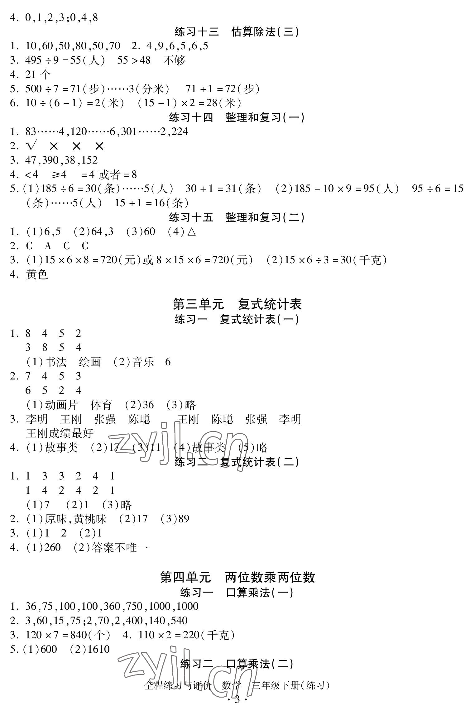 注:目前有些书本章节名称可能整理的还不是很完善,但都是按照顺序排列的,请同学们按照顺序仔细查找。练习册 2023年全程练习与评价三年级数学下册人教版 答案主要是用来给同学们做完题方便对答案用的,请勿直接抄袭。