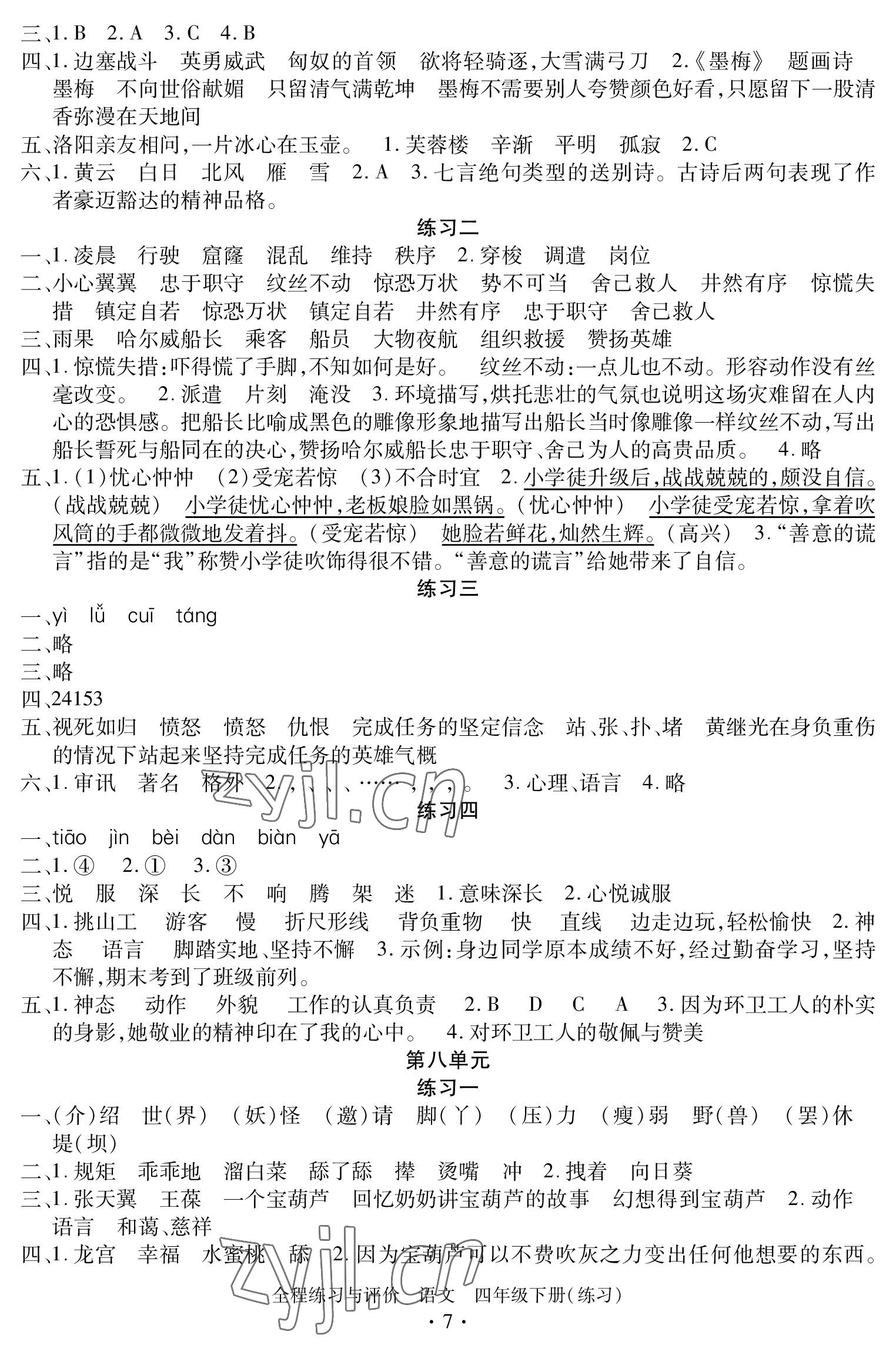 注:目前有些书本章节名称可能整理的还不是很完善,但都是按照顺序排列的,请同学们按照顺序仔细查找。练习册 2023年全程练习与评价四年级语文下册人教版 答案主要是用来给同学们做完题方便对答案用的,请勿直接抄袭。
