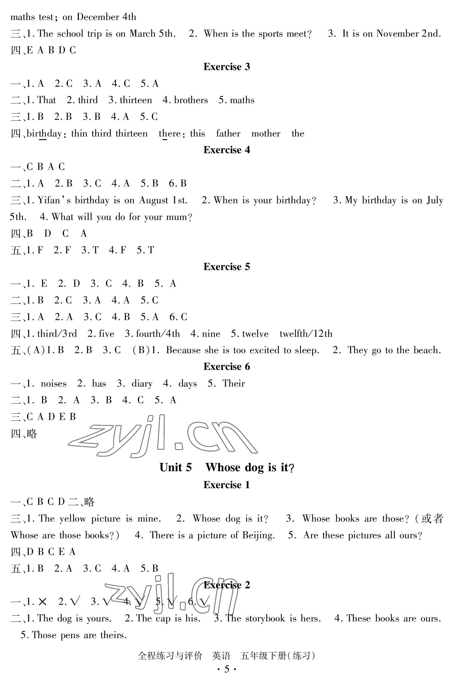 注:目前有些书本章节名称可能整理的还不是很完善,但都是按照顺序排列的,请同学们按照顺序仔细查找。练习册 2023年全程练习与评价五年级英语下册人教版 答案主要是用来给同学们做完题方便对答案用的,请勿直接抄袭。