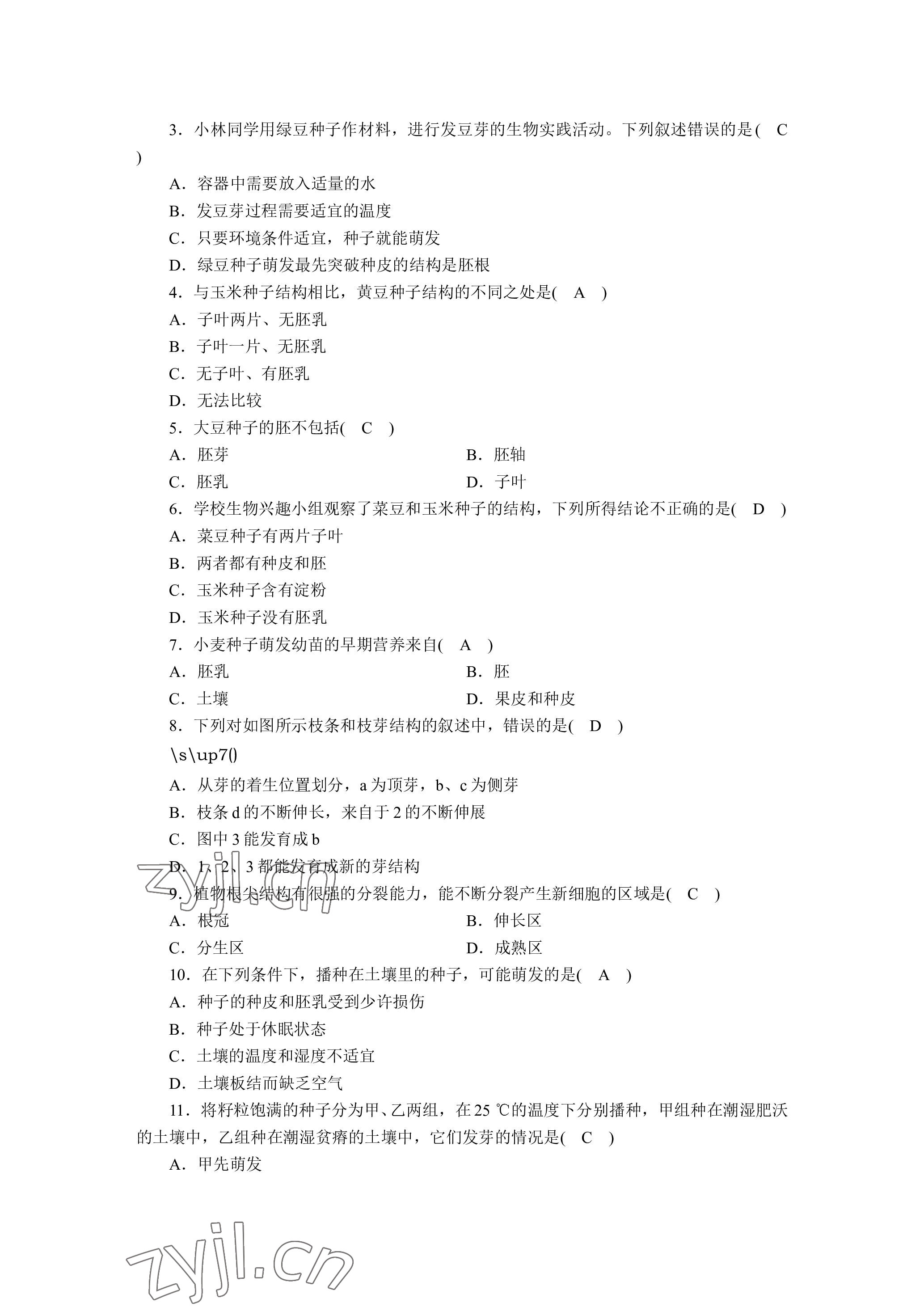 注:目前有些书本章节名称可能整理的还不是很完善,但都是按照顺序排列的,请同学们按照顺序仔细查找。练习册 2023年晨光全优同步指导训练与检测生物 答案主要是用来给同学们做完题方便对答案用的,请勿直接抄袭。