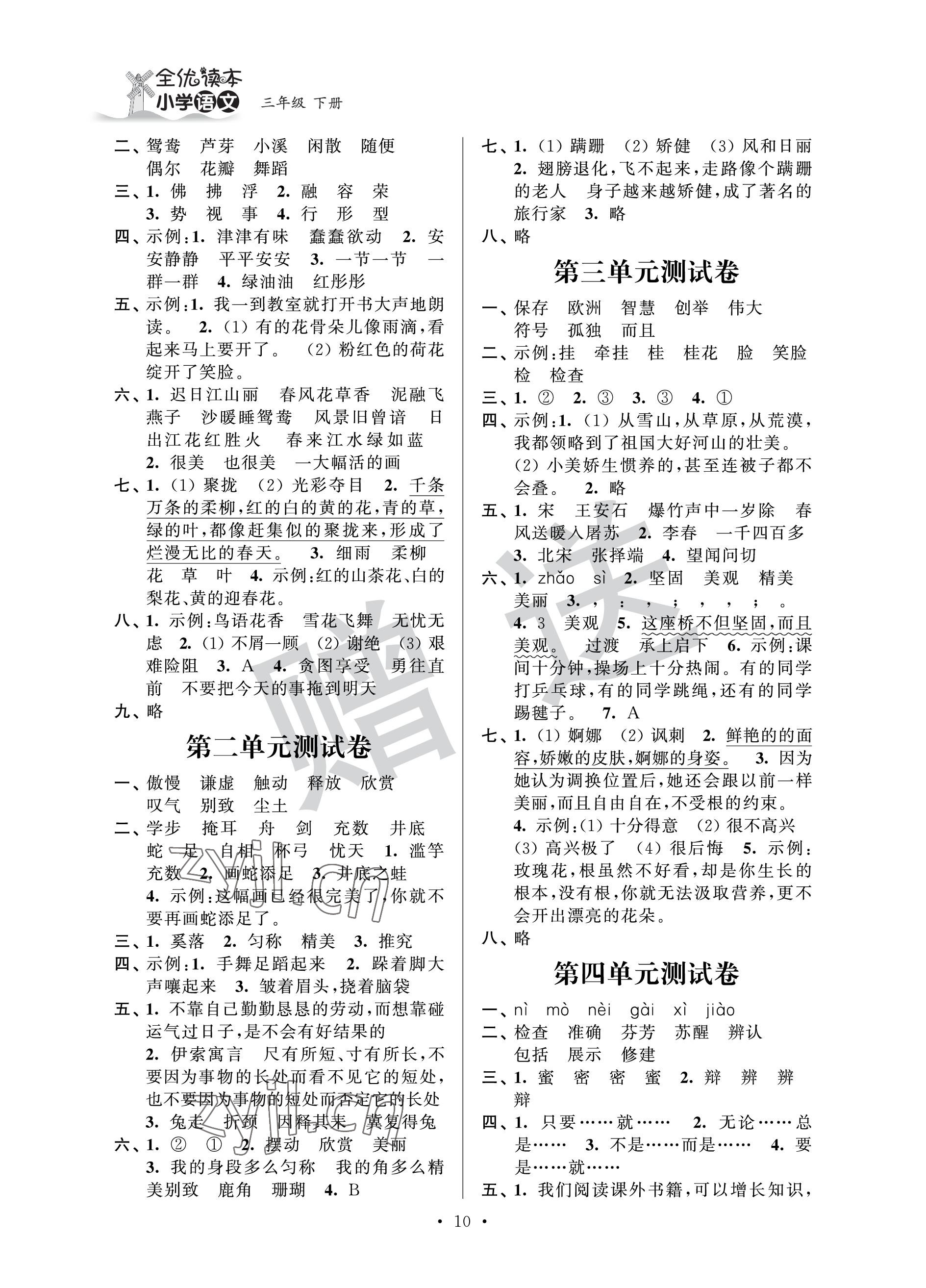 注:目前有些书本章节名称可能整理的还不是很完善,但都是按照顺序排列的,请同学们按照顺序仔细查找。练习册 2023年全优读本三年级语文下册人教版 答案主要是用来给同学们做完题方便对答案用的,请勿直接抄袭。