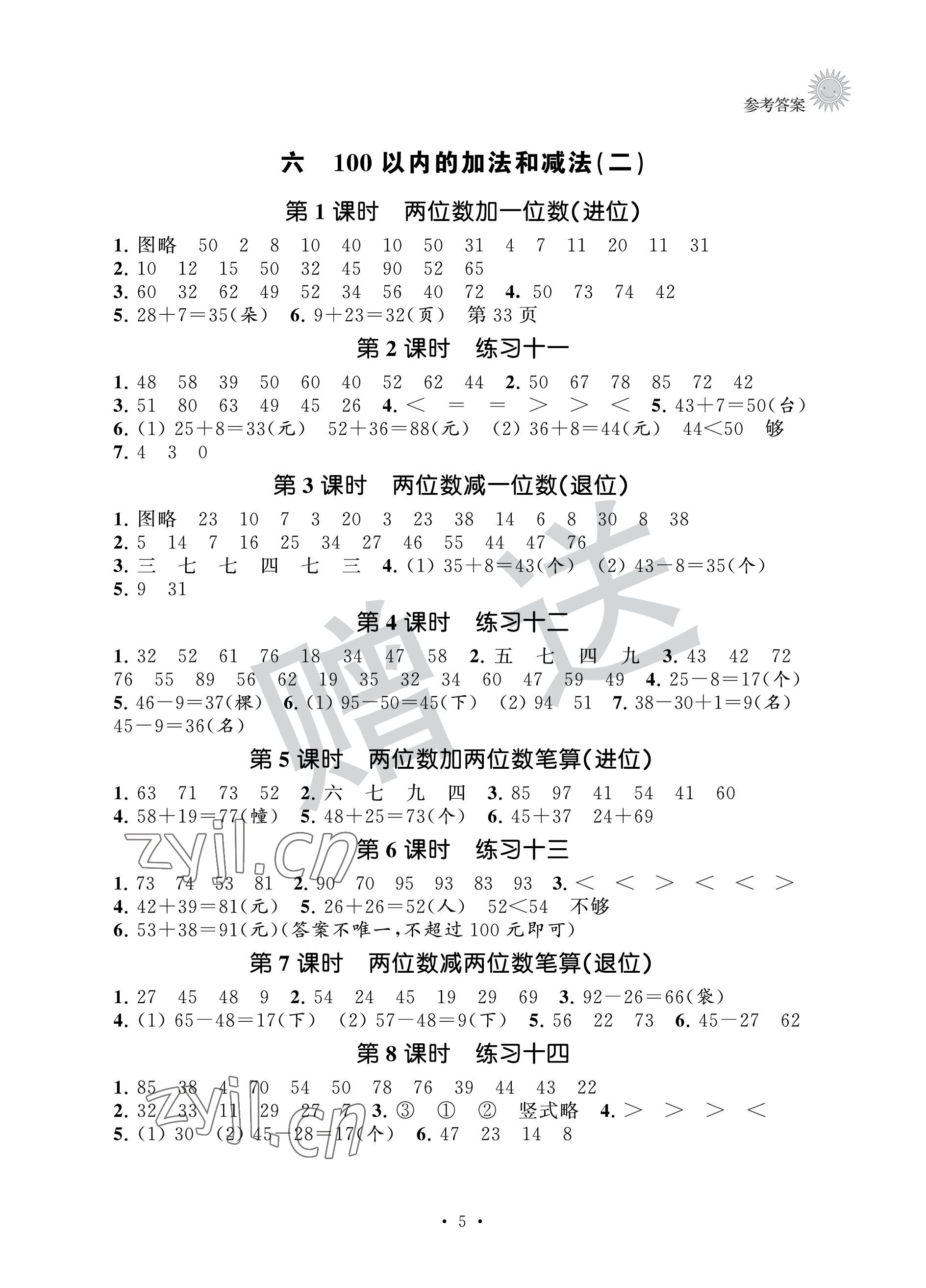 注:目前有些书本章节名称可能整理的还不是很完善,但都是按照顺序排列的,请同学们按照顺序仔细查找。练习册 2023年全优悦读本一年级数学下册苏教版 答案主要是用来给同学们做完题方便对答案用的,请勿直接抄袭。