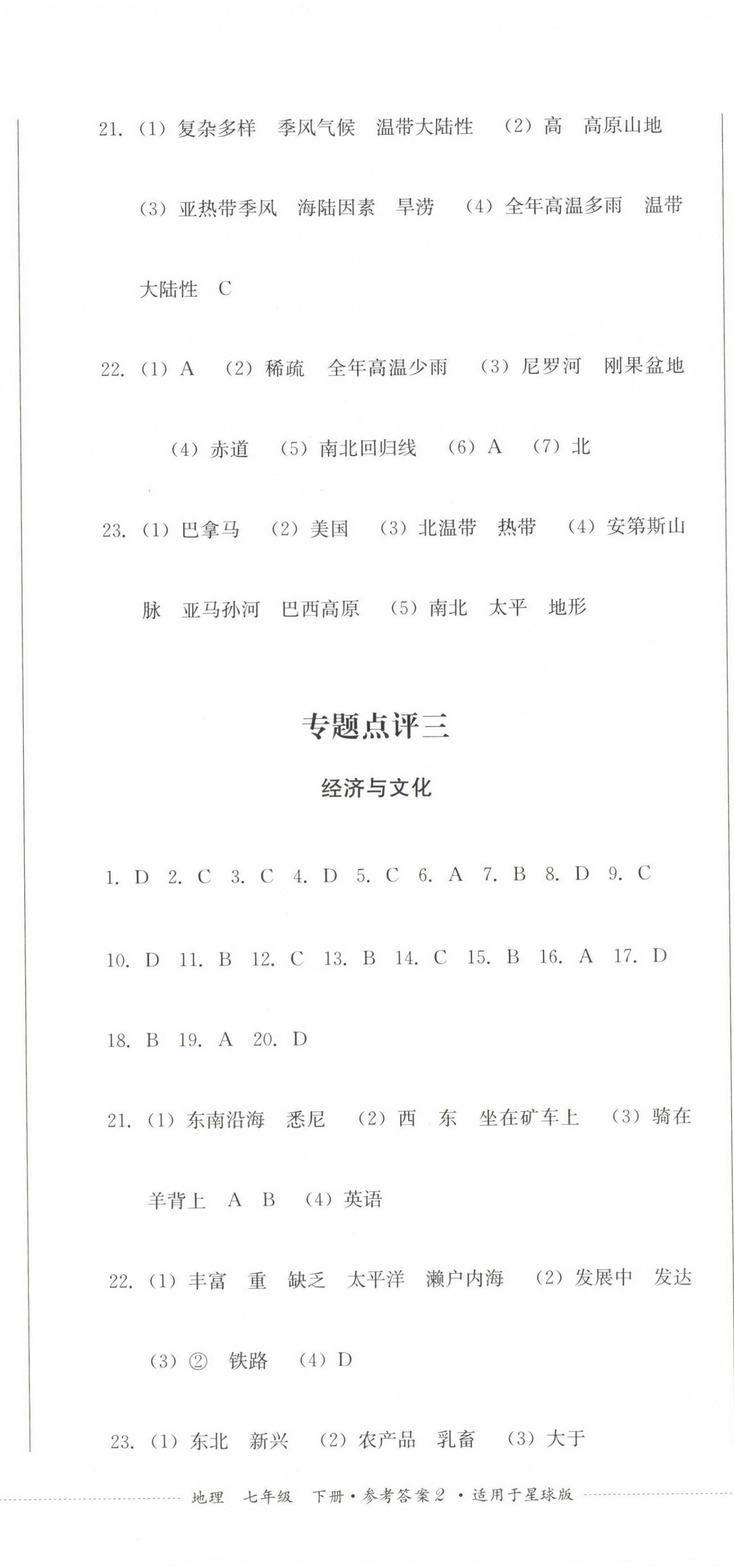 2023年学情点评四川教育出版社七年级地理下册商务星球版