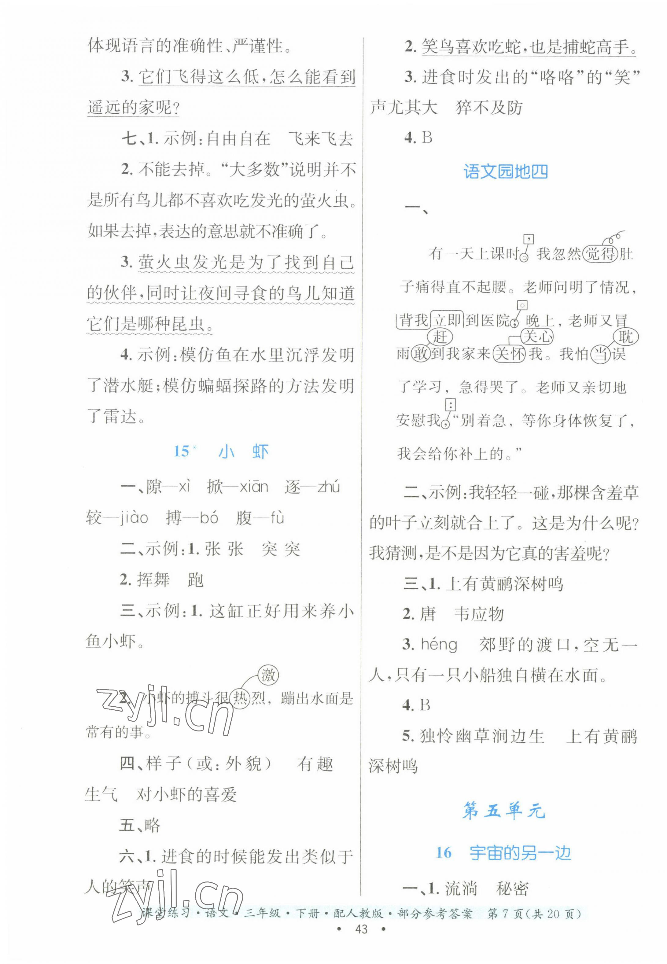 注:目前有些书本章节名称可能整理的还不是很完善,但都是按照顺序排列的,请同学们按照顺序仔细查找。练习册 2023年课堂练习三年级语文下册人教版 答案主要是用来给同学们做完题方便对答案用的,请勿直接抄袭。