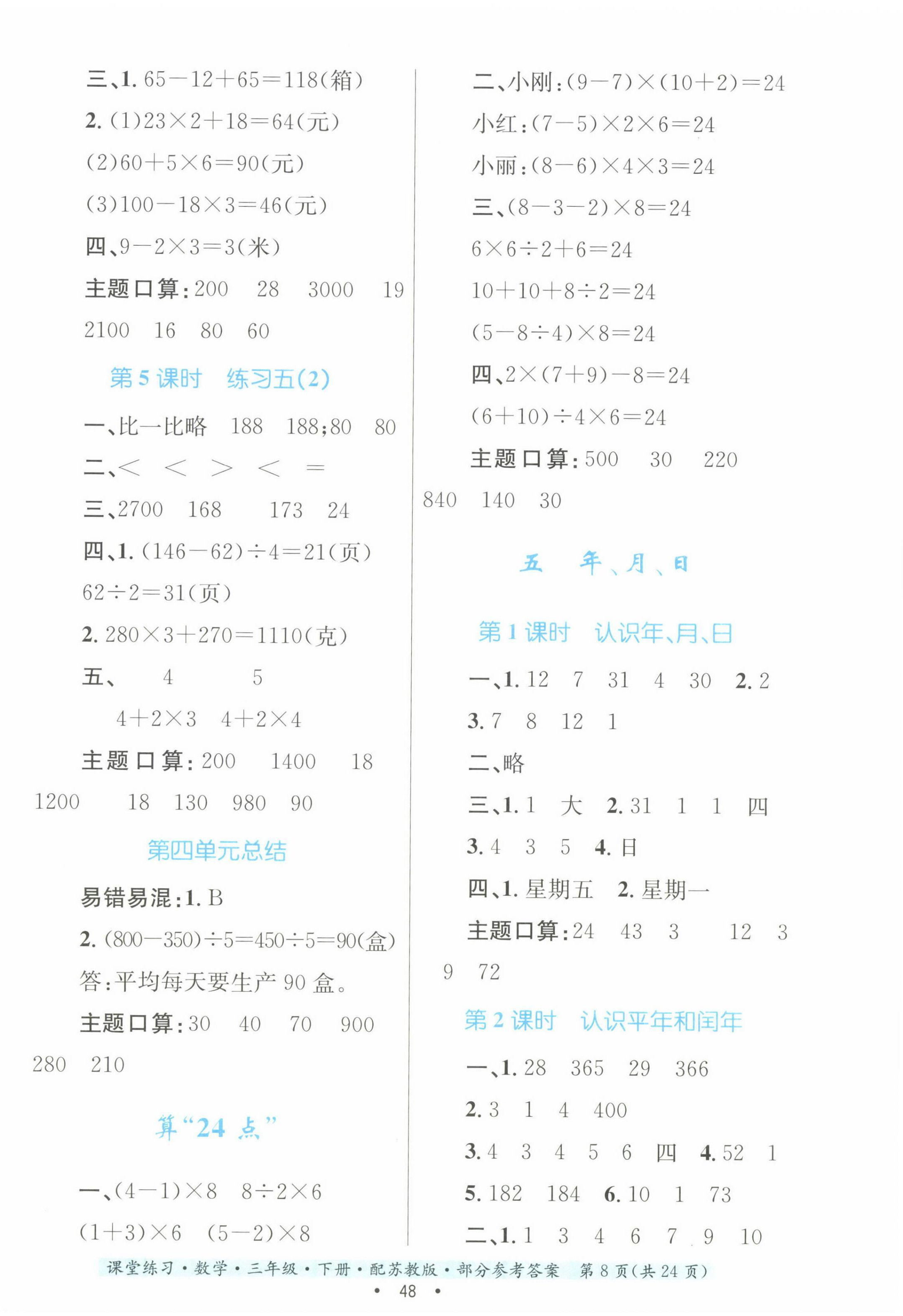 注:目前有些书本章节名称可能整理的还不是很完善,但都是按照顺序排列的,请同学们按照顺序仔细查找。练习册 2023年课堂练习三年级数学下册苏教版 答案主要是用来给同学们做完题方便对答案用的,请勿直接抄袭。