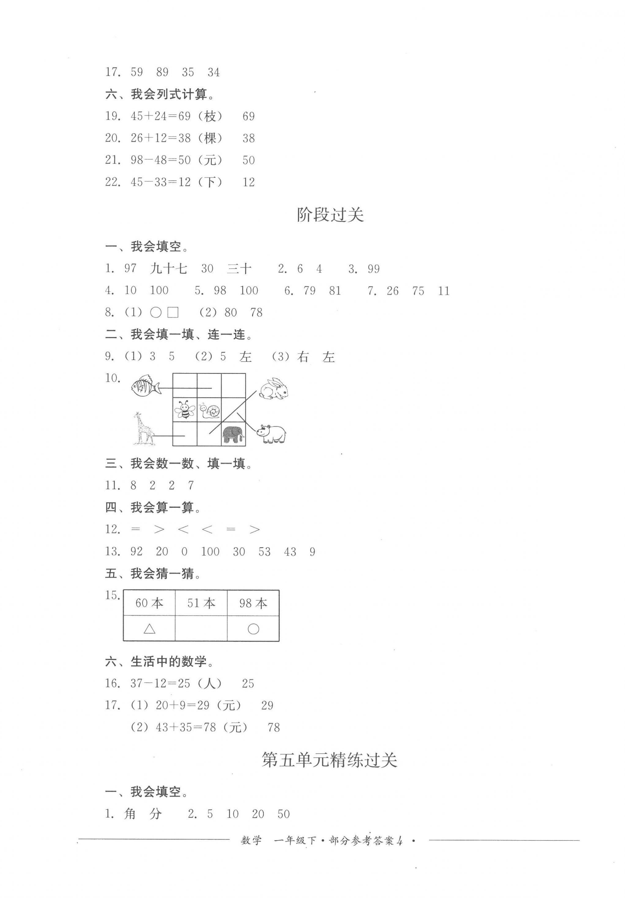 注:目前有些书本章节名称可能整理的还不是很完善,但都是按照顺序排列的,请同学们按照顺序仔细查找。练习册 2023年精练过关四川教育出版社一年级数学下册西师大版 答案主要是用来给同学们做完题方便对答案用的,请勿直接抄袭。