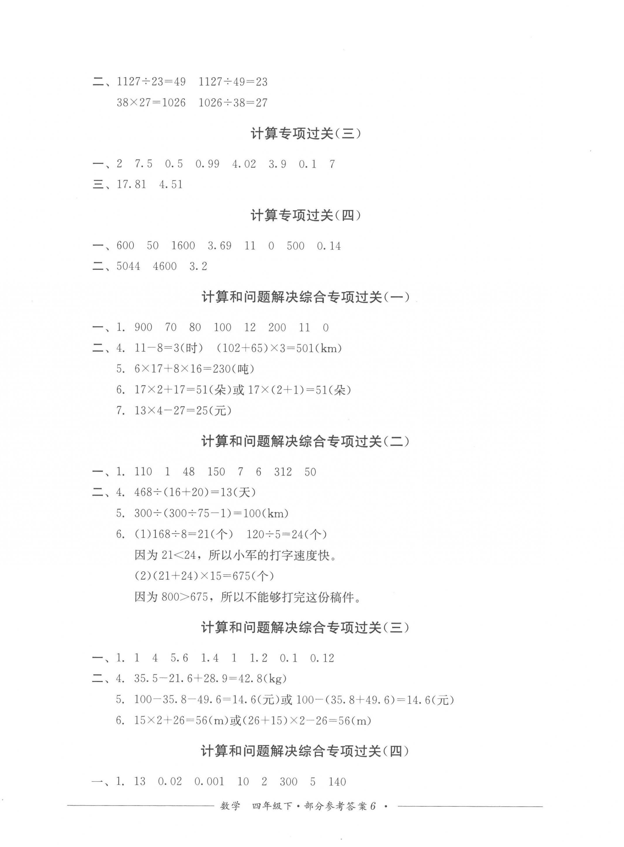 注:目前有些书本章节名称可能整理的还不是很完善,但都是按照顺序排列的,请同学们按照顺序仔细查找。练习册 2023年精练过关四川教育出版社四年级数学下册西师大版 答案主要是用来给同学们做完题方便对答案用的,请勿直接抄袭。