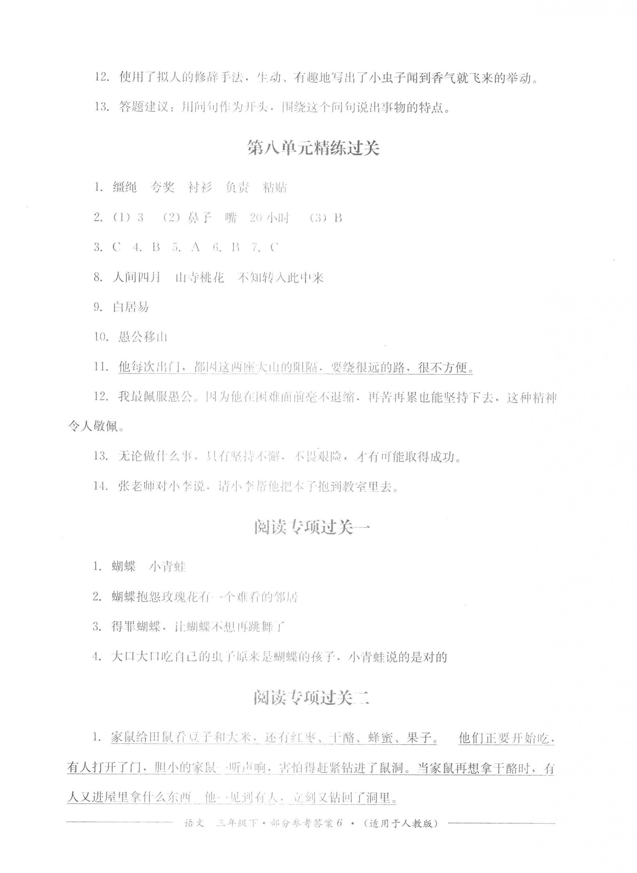 注:目前有些书本章节名称可能整理的还不是很完善,但都是按照顺序排列的,请同学们按照顺序仔细查找。练习册 2023年精练过关四川教育出版社三年级语文下册人教版 答案主要是用来给同学们做完题方便对答案用的,请勿直接抄袭。