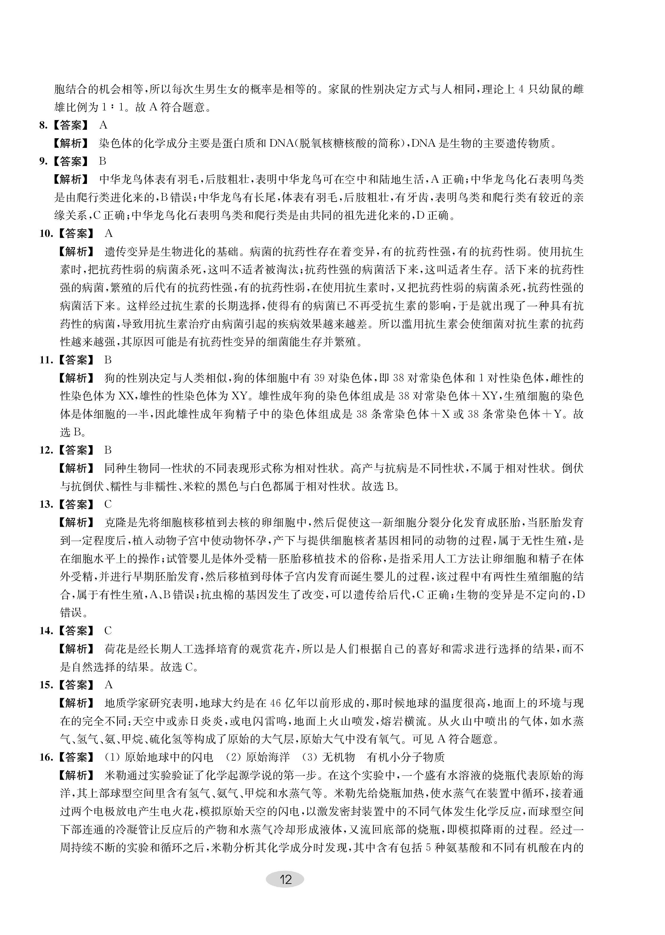 注:目前有些书本章节名称可能整理的还不是很完善,但都是按照顺序排列的,请同学们按照顺序仔细查找。练习册 2023年关键能力进阶八年级生物下册 答案主要是用来给同学们做完题方便对答案用的,请勿直接抄袭。
