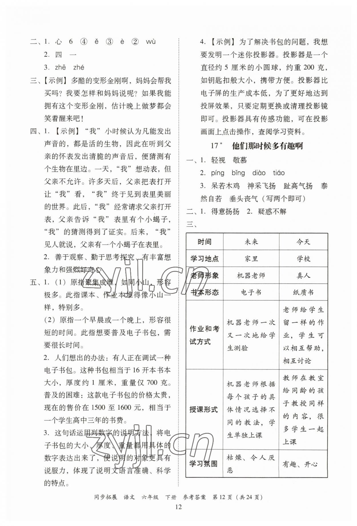 注:目前有些书本章节名称可能整理的还不是很完善,但都是按照顺序排列的,请同学们按照顺序仔细查找。练习册 2023年同步拓展六年级语文下册人教版 答案主要是用来给同学们做完题方便对答案用的,请勿直接抄袭。