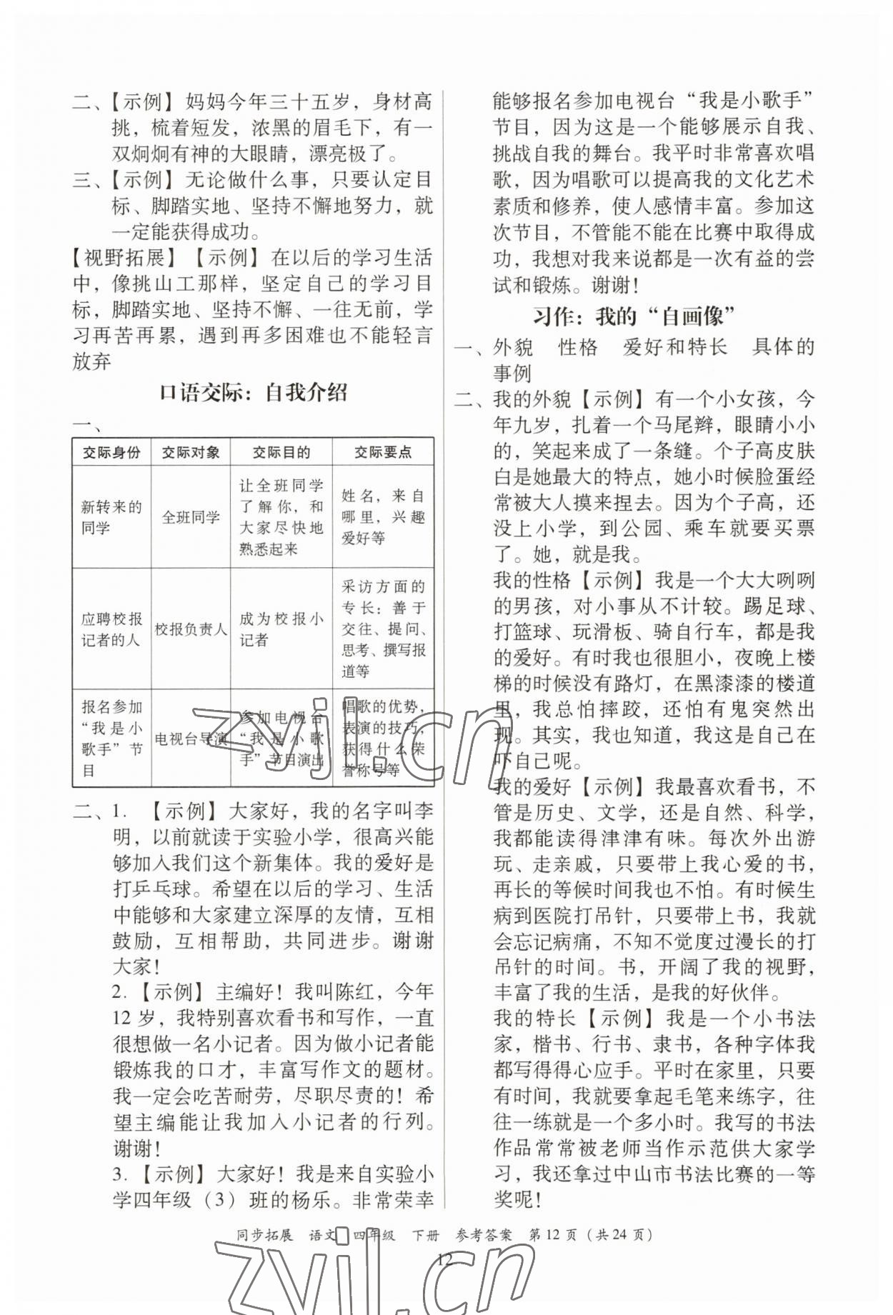 注:目前有些书本章节名称可能整理的还不是很完善,但都是按照顺序排列的,请同学们按照顺序仔细查找。练习册 2023年同步拓展四年级语文下册人教版 答案主要是用来给同学们做完题方便对答案用的,请勿直接抄袭。